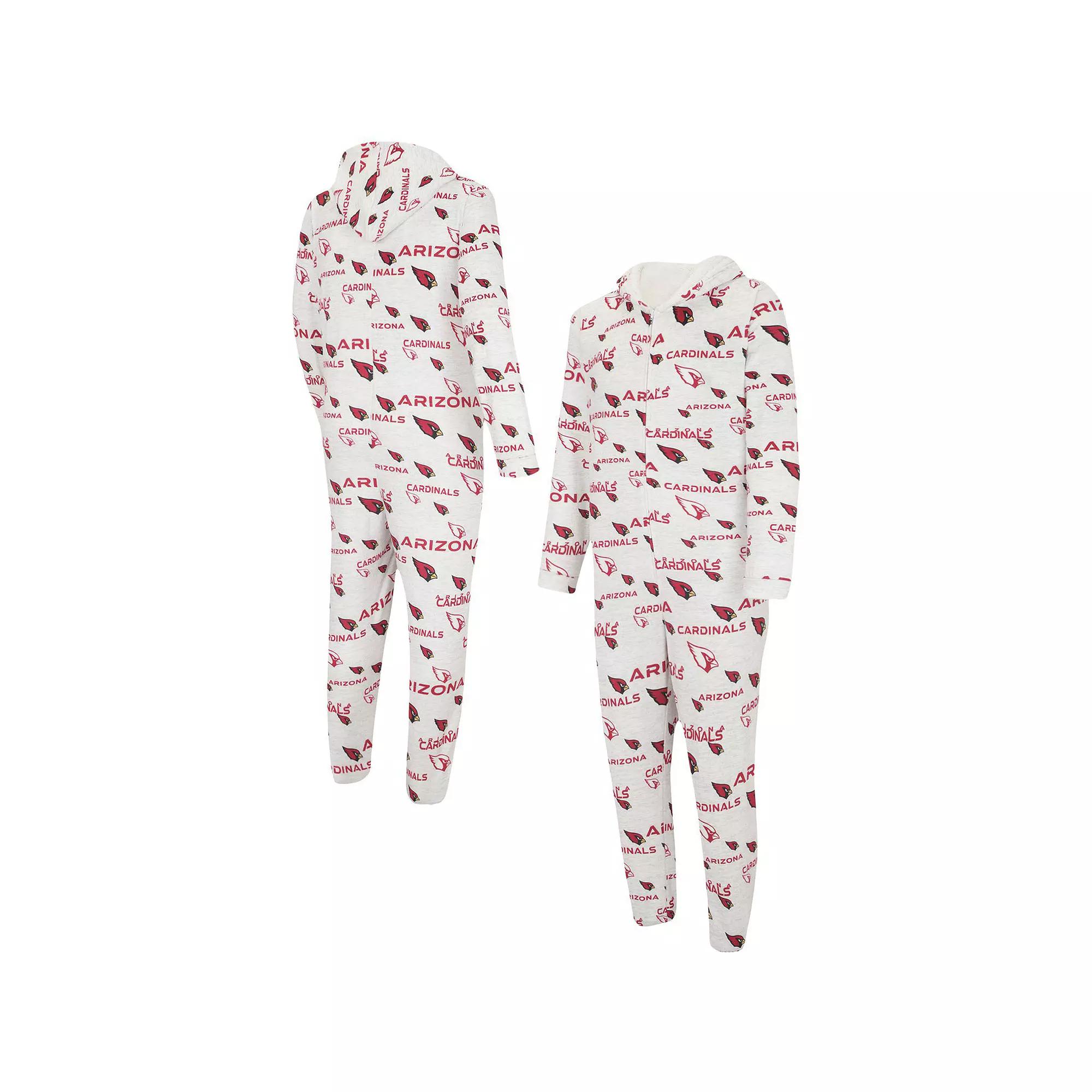 Flaunt your Arizona Cardinals spirit while staying cozy in this hooded Docket Union pajama suit from Concepts Sport. Crafted with warm microfleece and Sherpa lining, these jammies offer the comfort you need to dream of sweet team victories. Allover Arizona Cardinals graphics make a bold statement about your fandom. As a bonus, a full-zip torso provides easy put-on and removal each night.