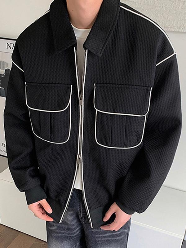 Men's Contrast Top-stitching Dual Pocket Jacket