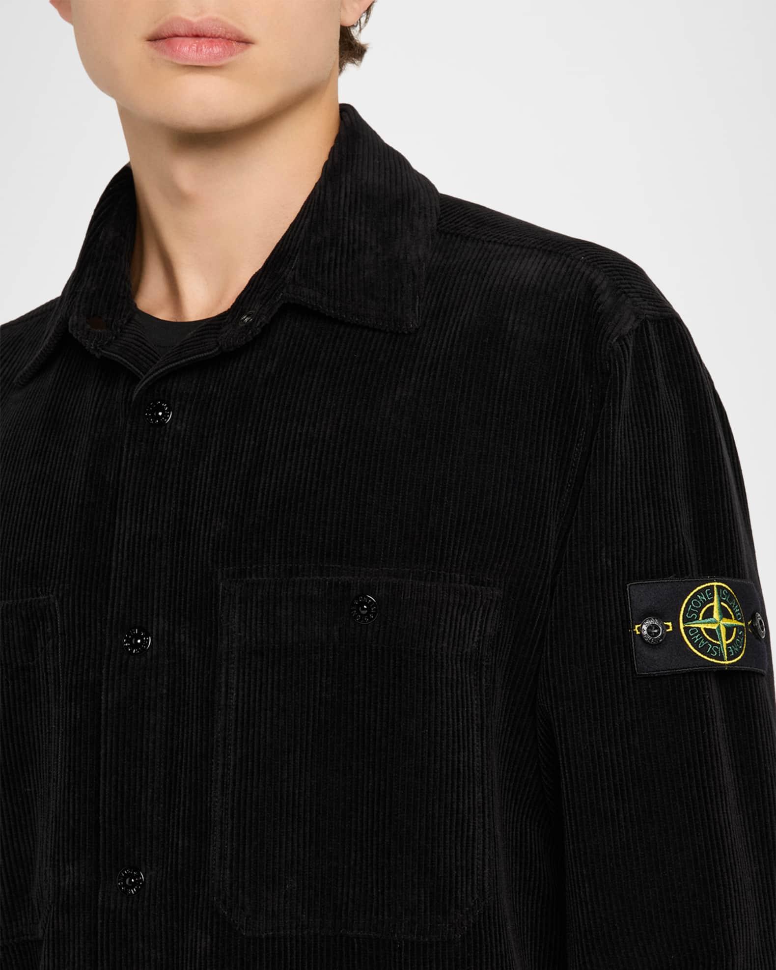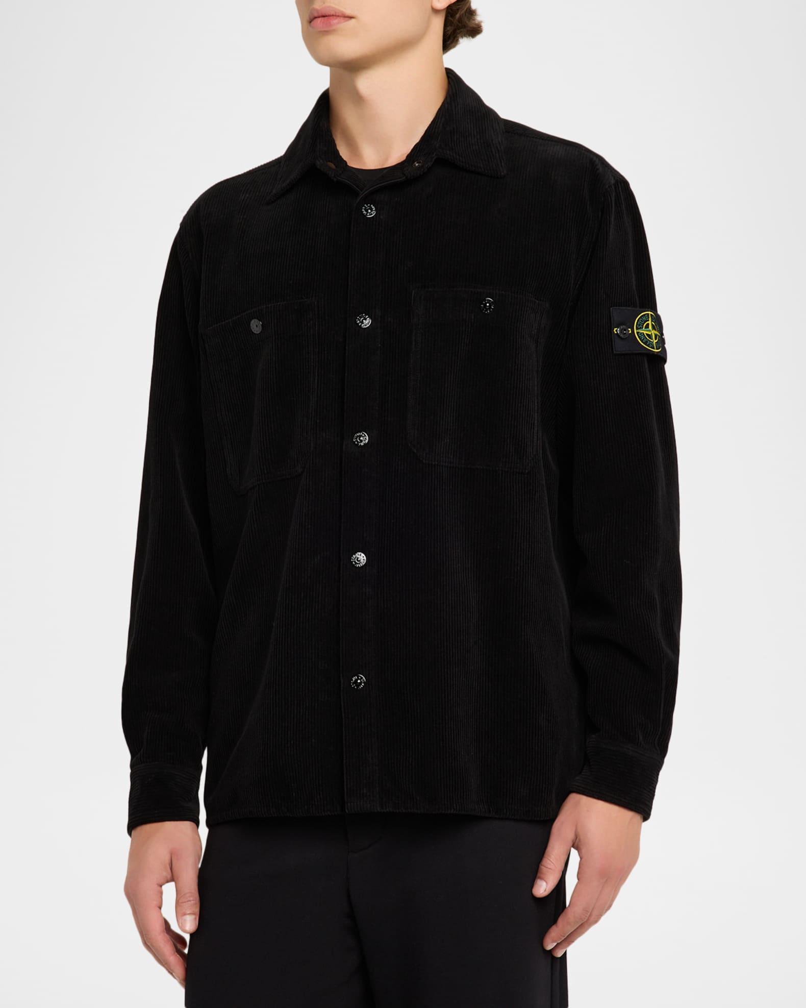Elevate your everyday style with this cotton corduroy overshirt. Stone Island showcases a textured feel that adds dimension to your ensemble. Spread collar Snap placket Long sleeves; adjustable cuffs Compass logo on the left arm Patch pockets with snaps Classic fit Cotton Machine wash cold Made in Romania