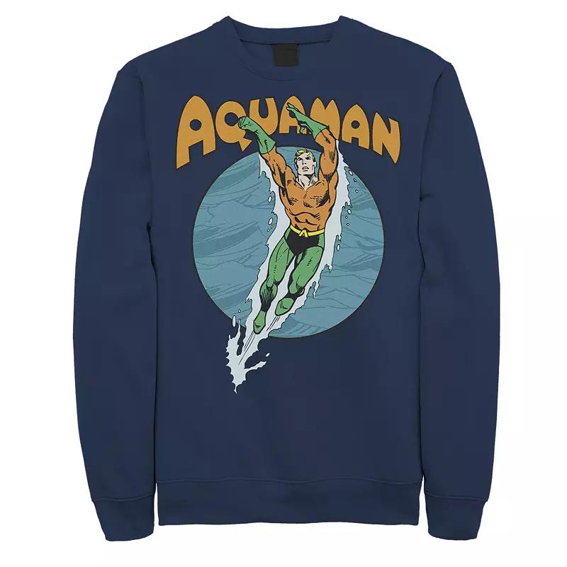 Dive into superhero style with this mens DC Comics Aquaman fleece sweatshirt. Dive into superhero style with this mens DC Comics Aquaman fleece sweatshirt. Soft fleece construction Heathered Crewneck Long sleevesFABRIC & CARE Cotton, polyester Machine wash Imported Size: XXL. Color: Navy. Gender: male. Age Group: adult. Pattern: Graphic.