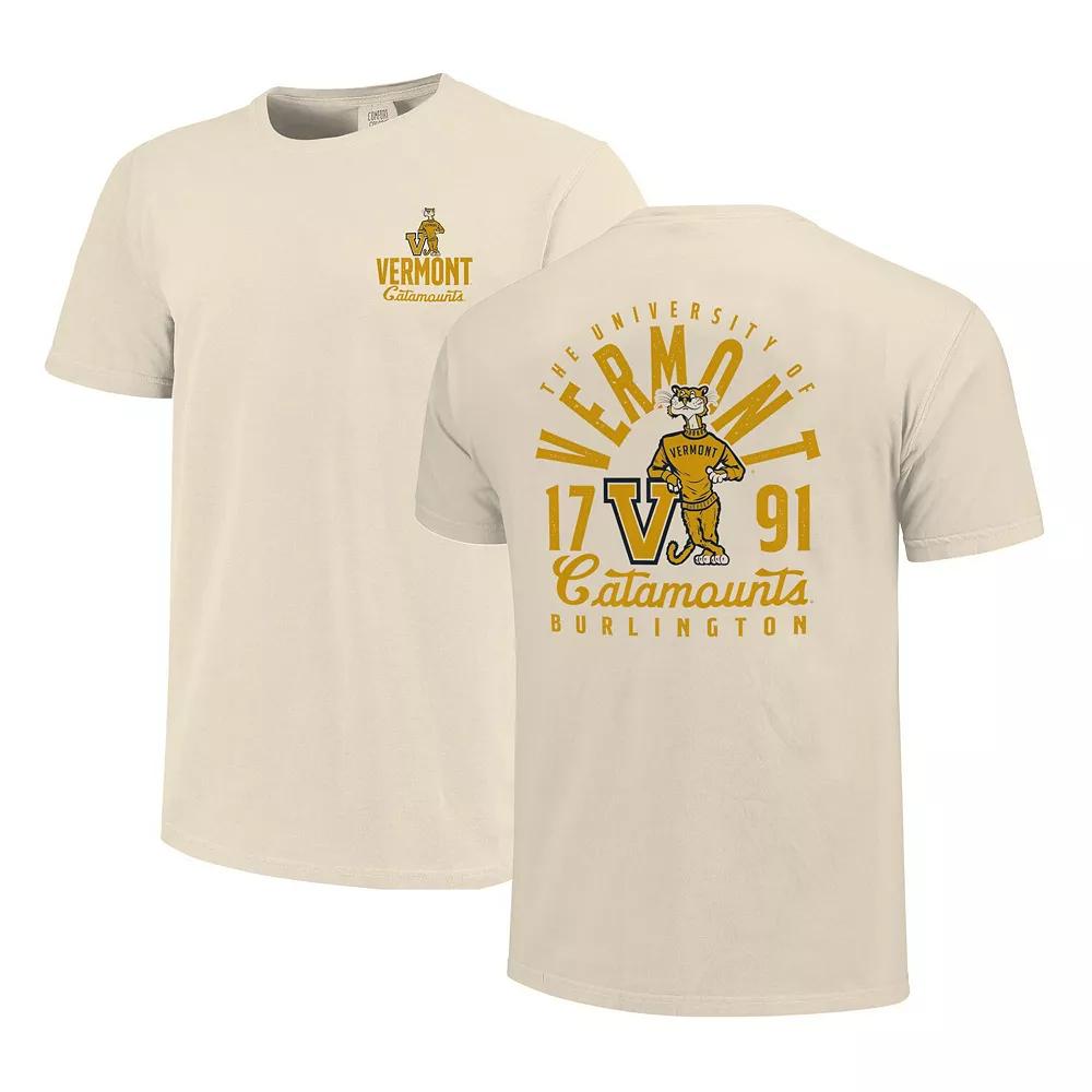 Rep your Vermont Catamounts in retro style with this Comfort Colors Mascot Overlay T-Shirt. Made from ultra-soft, pre-washed cotton, it offers a comfy, lived-in feel thats perfect for game day. The vintage team details printed on the front and back add a touch of Vermont Catamounts history to your look.Rep your Vermont Catamounts in retro style with this Comfort Colors Mascot Overlay T-Shirt. Made from ultra-soft, pre-washed cotton, it offers a comfy, lived-in feel thats perfect for game day. The vintage team details printed on the front and back add a touch of Vermont Catamounts history to your look.PRODUCT FEATURESMachine wash, tumble dry lowMade with sustainably and fairly grown USA cottonOfficially licensedTwill taped shoulder to shoulderBrand: Image OneDouble-needle stitched neck, armholes and bottom hemShort sleeveScreen print graphicsUltrasoft prewashed tee for a comfy, lived-in feelImportedVintage team logo and name printed on the frontMaterial: 100% Ring-Spun CottonThrowback team design with schools founding year printed across the back with distressed detailsCrew neck Color: Vmt Beige. Gender: male. Age Group: adult.