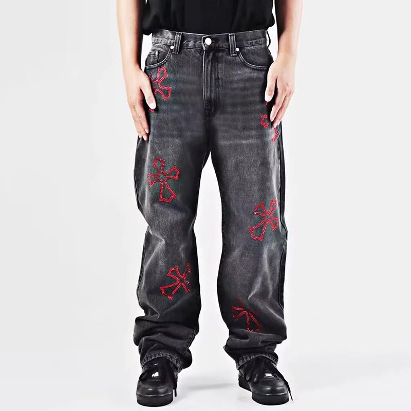 Men's Cross Rhinestone Street Denim Straight Jeans