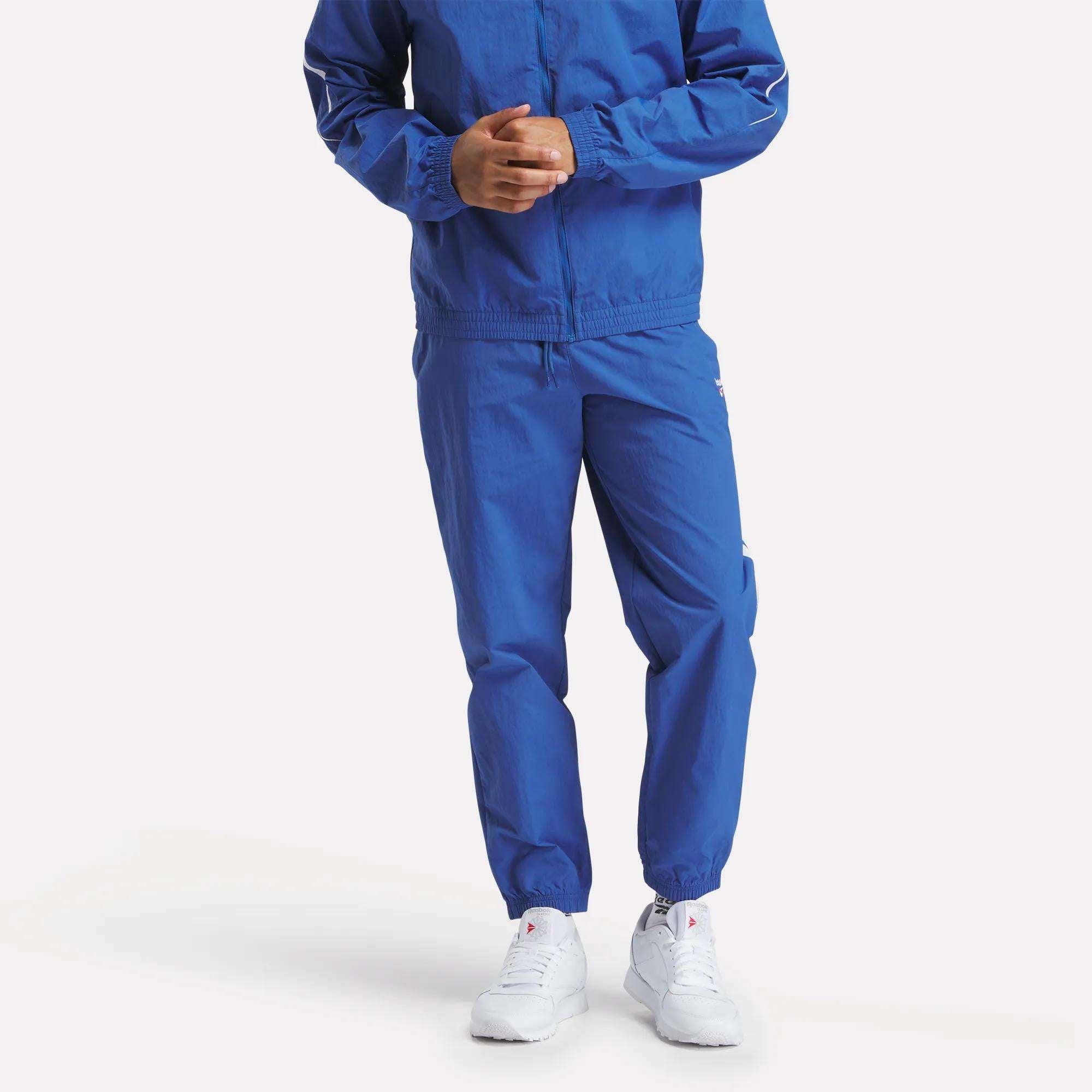 Woven crinkle pants inspired by old-school styleTake a deep cut from the Reebok archives when you wear these men's pants. Heritage crinkle fabric and hits of color give vintage vibes. An embroidered crosscheck in color sets things off nicely.