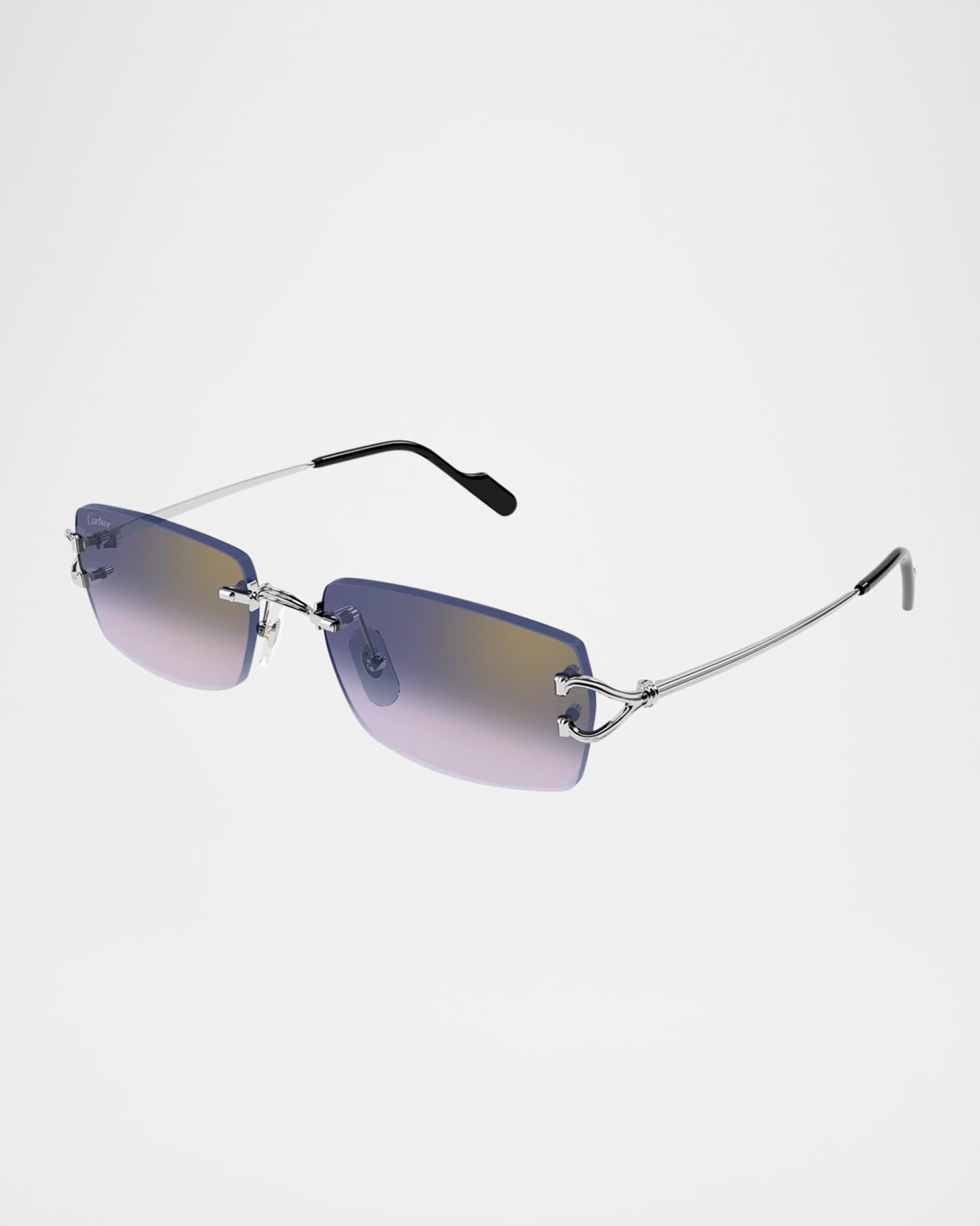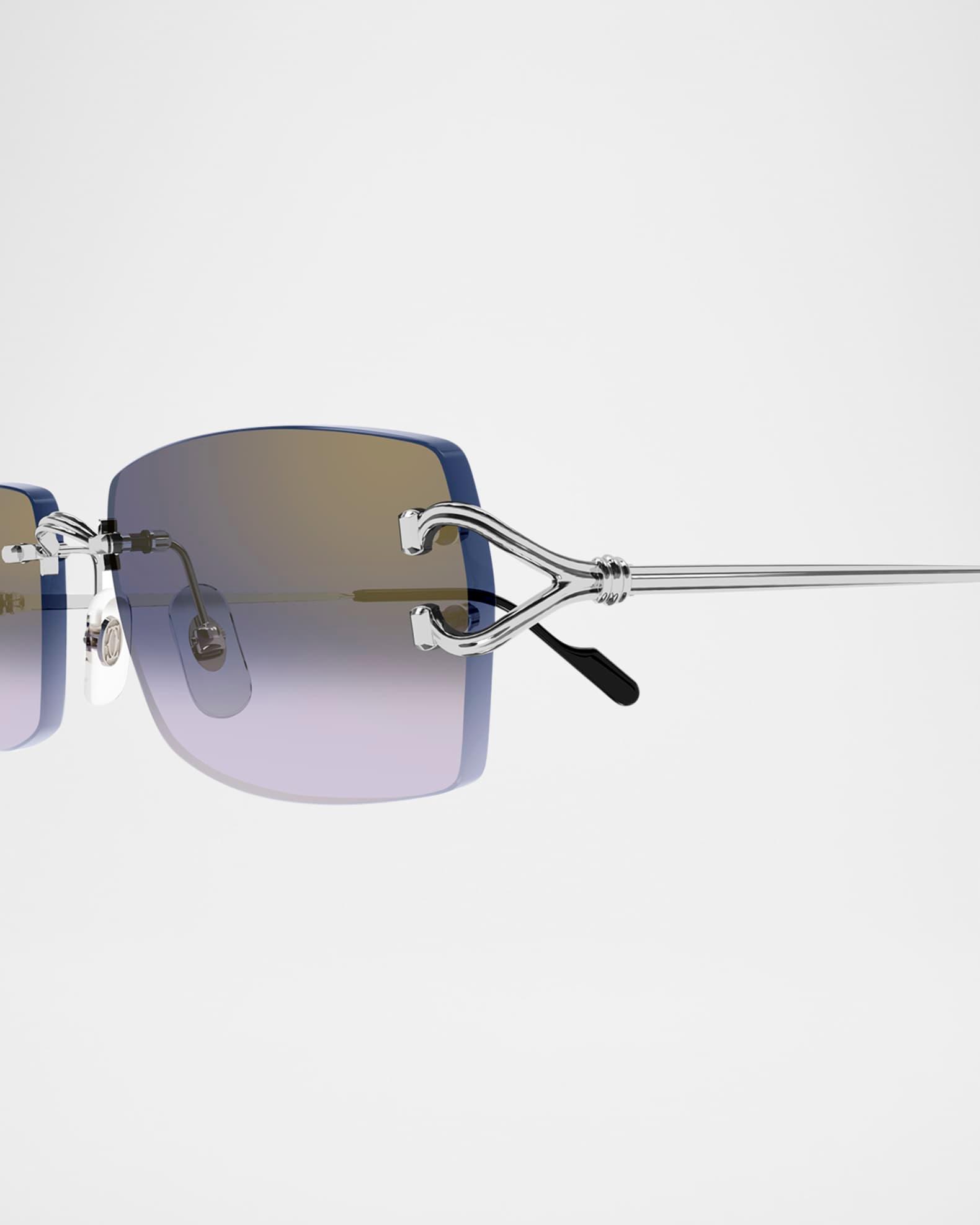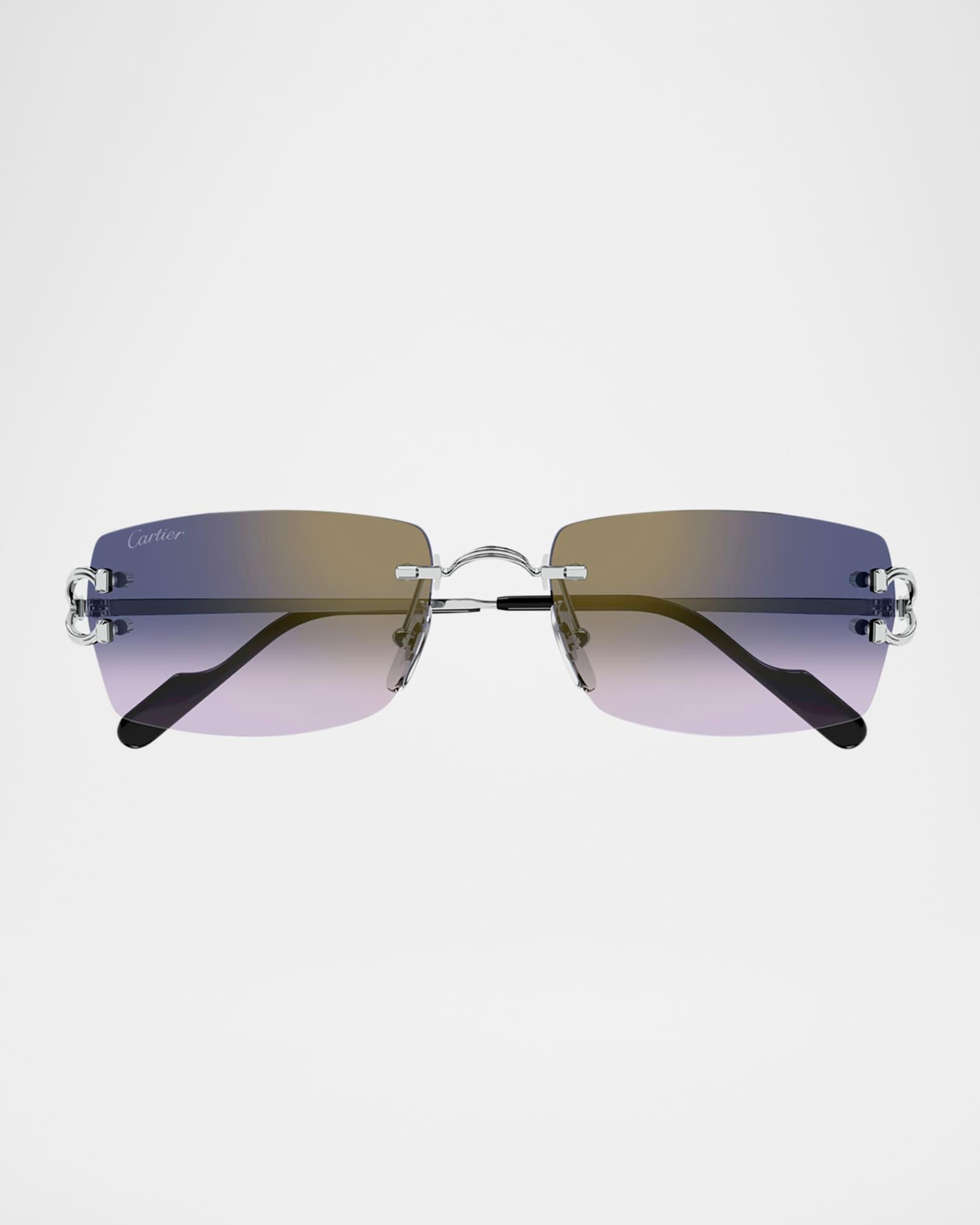 Cartier "CT0550SM" rectangle sunglasses in metal Lens/bridge/temple (in mm): 56-18-140 Solid-color lenses Right lens logo script Adjustable nose pads Curved, capped temple tips Metal 100% UVA/UVB protection Made in France Proposition 65 warning for California residents