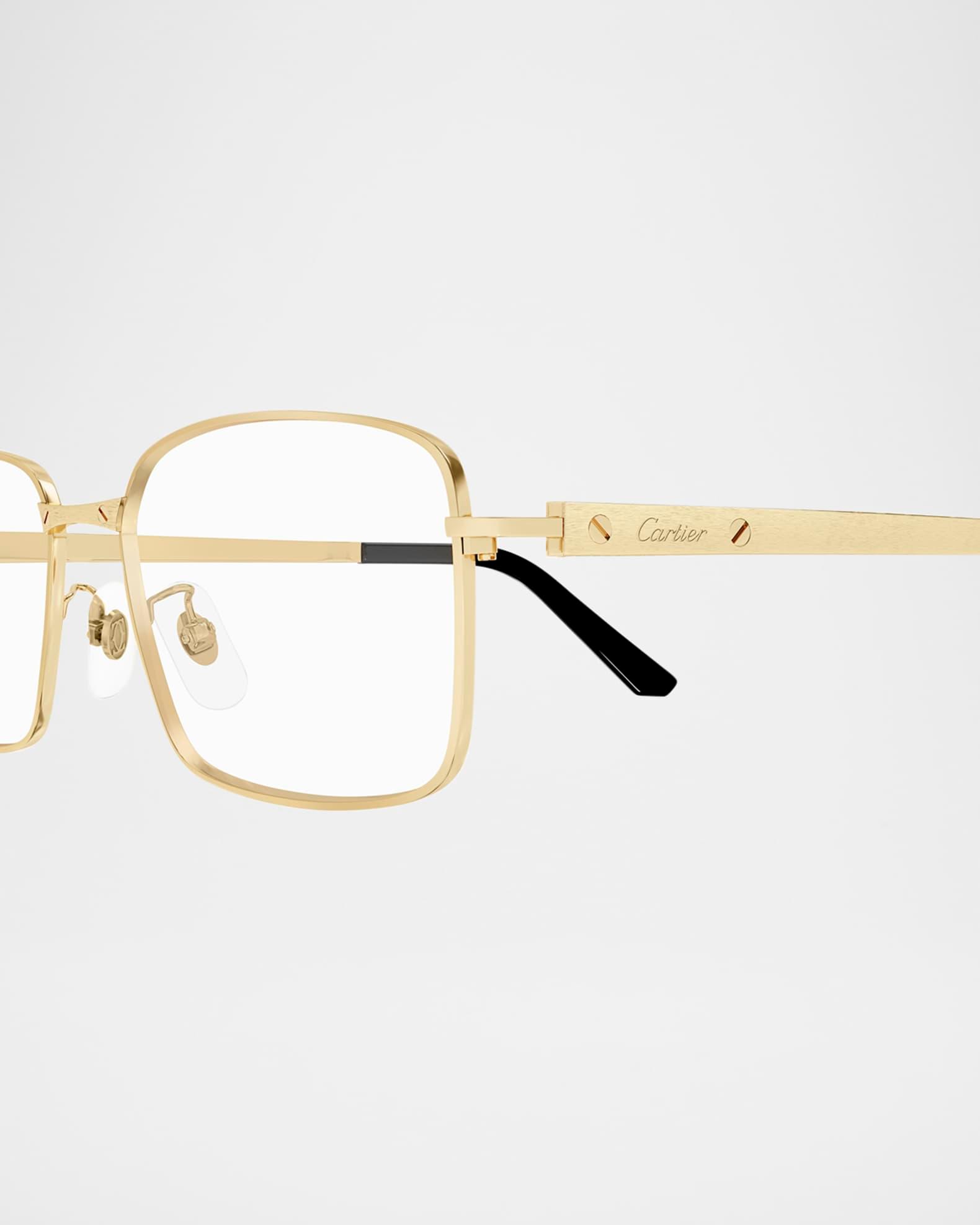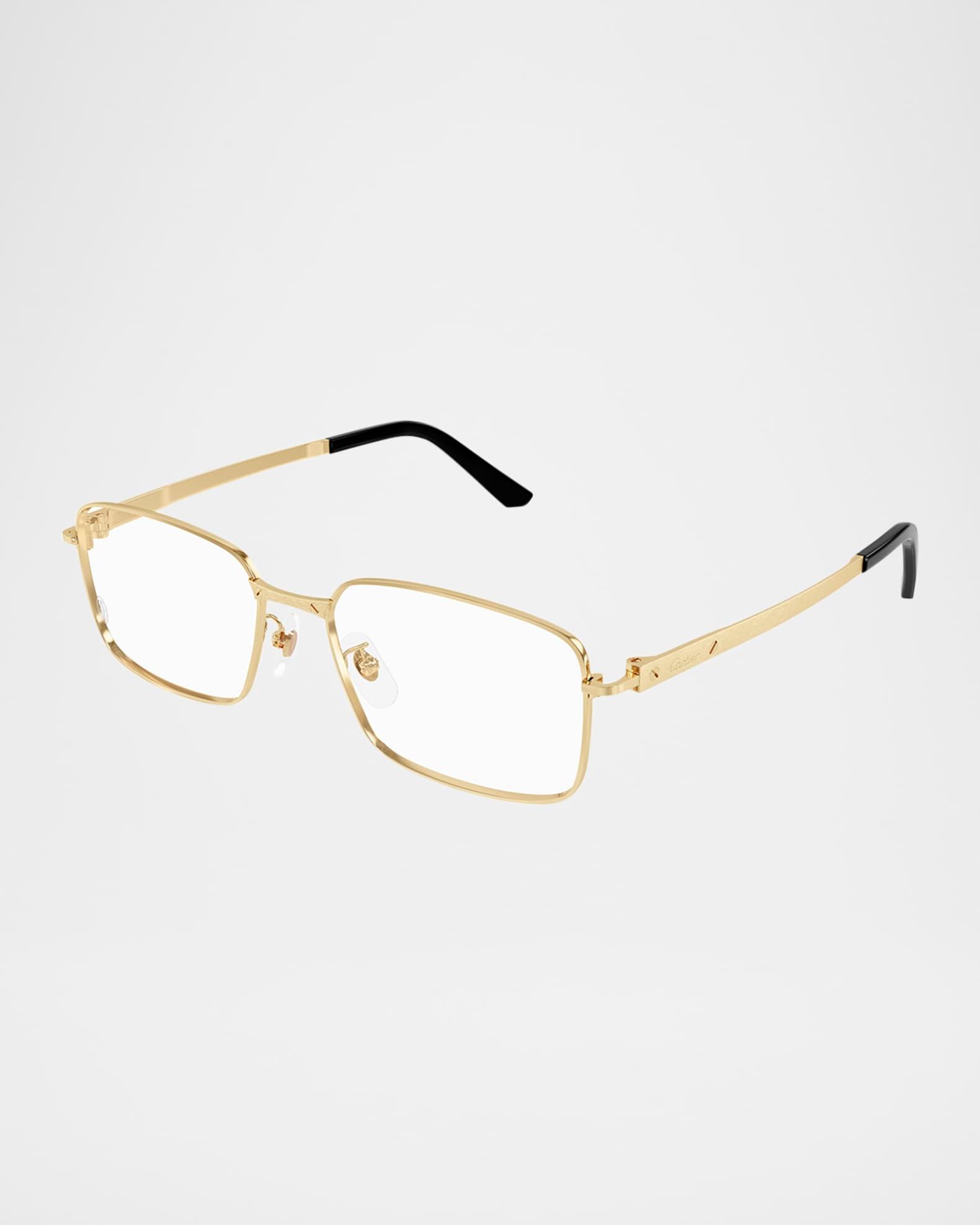 Cartier "CT0555OA" rectangular optical frames in luxurious gold-tone titanium Lens/bridge/temple (in mm): 55-17-145 Clear, non-optical demo lenses (replacement recommended) Adjustable nose pads Engraved logo on the temples Thin arms Curved, capped temple tips Titanium Made in Japan Proposition 65 warning for California residents