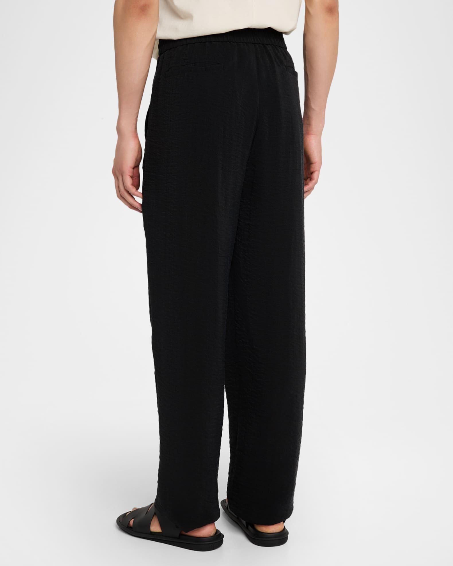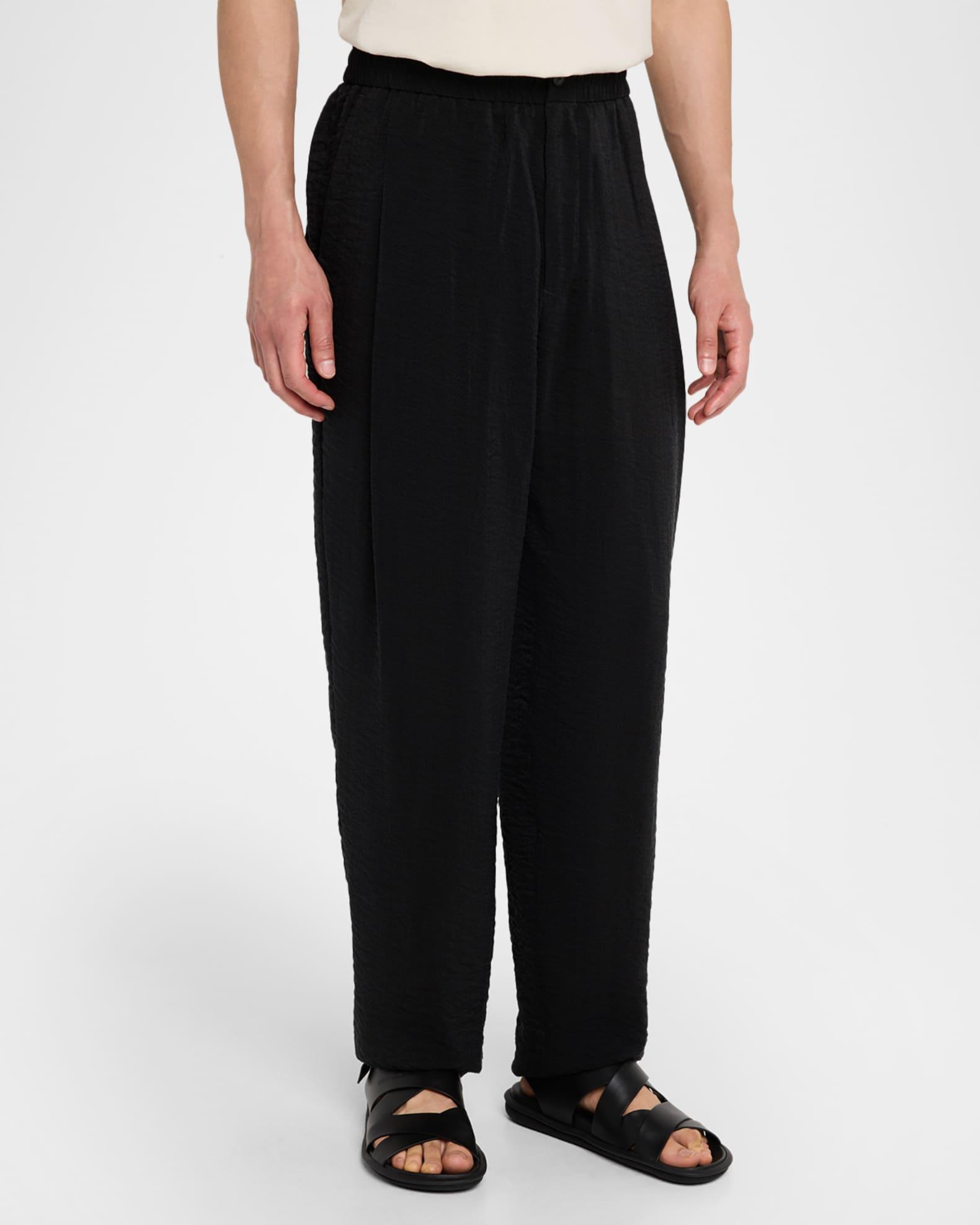 Giorgio Armani trousers are crafted in a fluid-like cupro blend with a silky finish. Elasticized drawstring waist Pleated front Side seam pockets Back welt pockets Full length Loose fit through straight legs Pull-on style Cupro/nylon/polyamide Dry clean Made in Italy