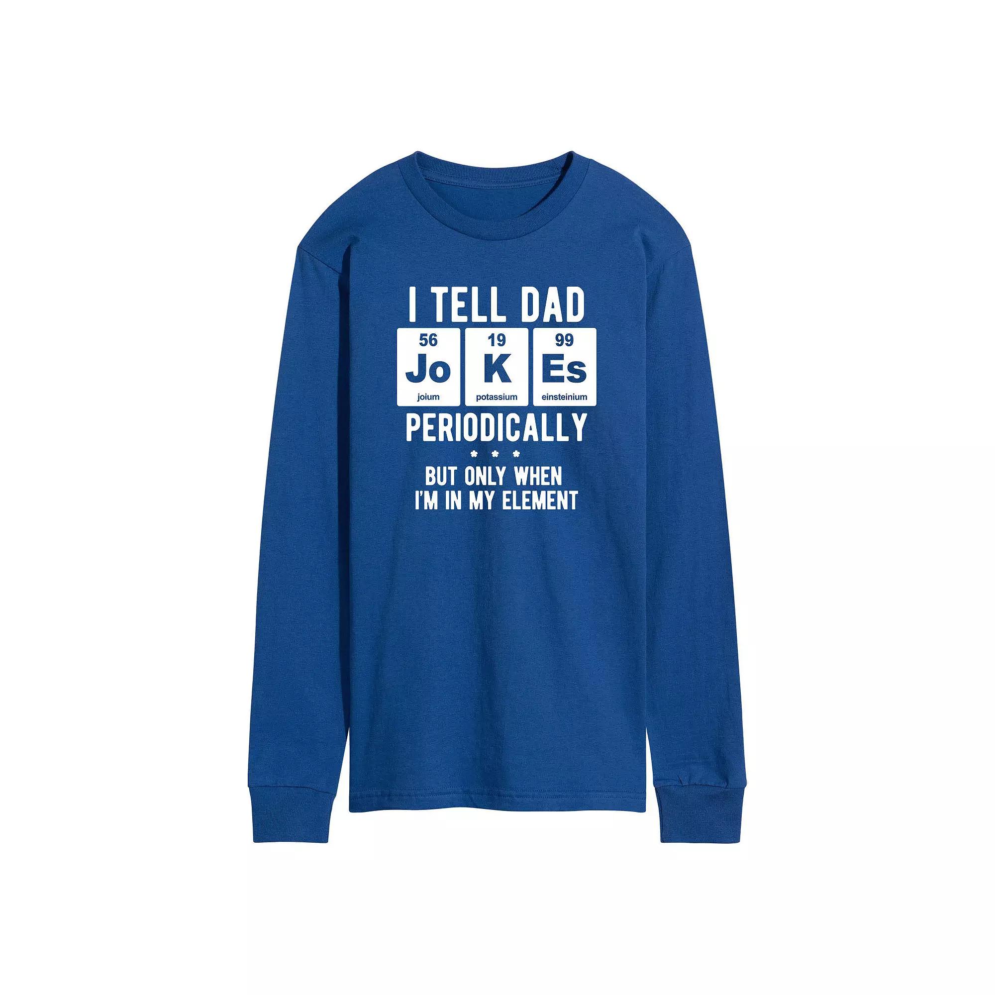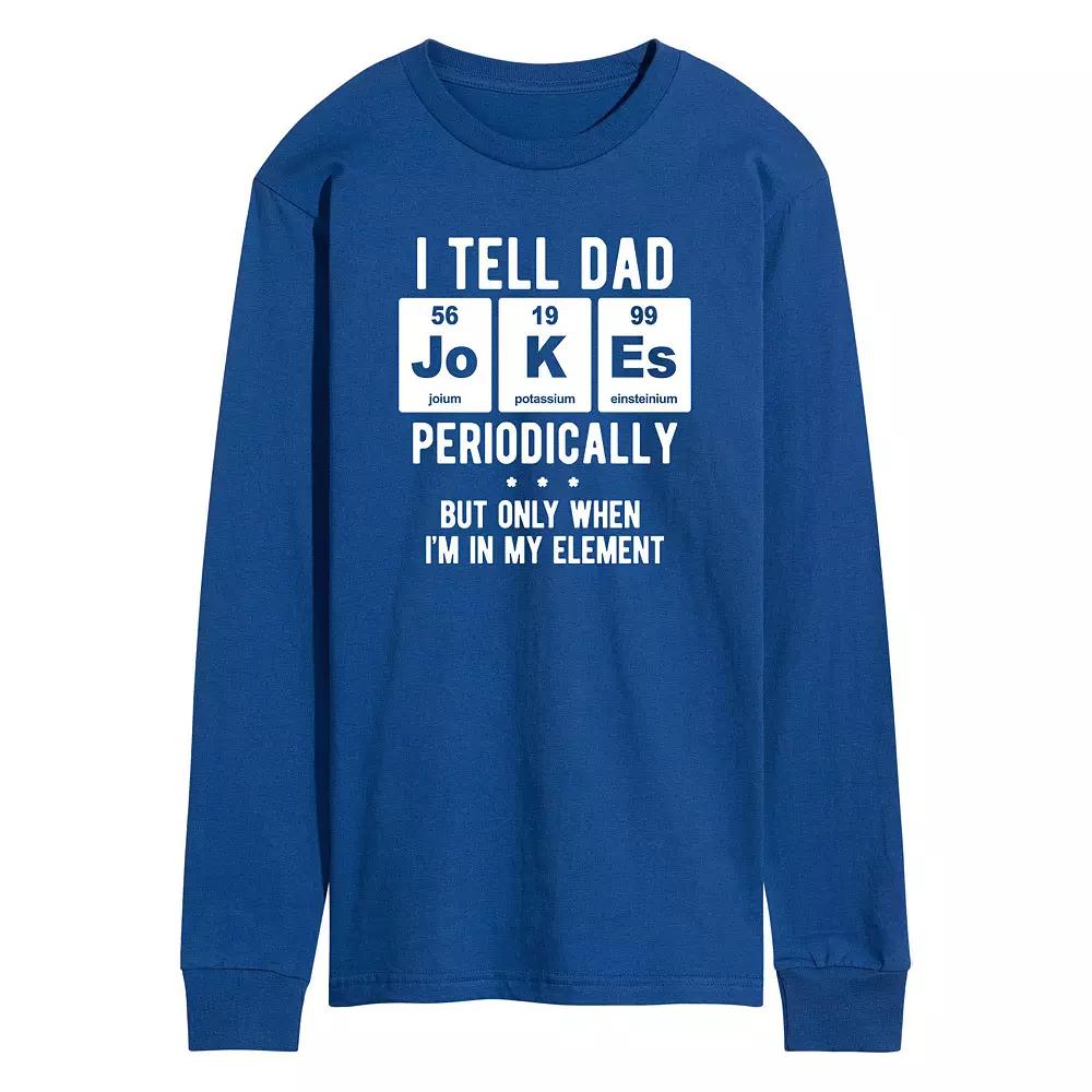 Add new style to your casual wardrobe with this Mens Dad Jokes Periodically Long Sleeve Graphic Tee. Add new style to your casual wardrobe with this Mens Dad Jokes Periodically Long Sleeve Graphic Tee. FEATURES Crewneck Long sleeveFABRIC & CARE Solid cotton, heather, cotton, polyester Machine wash Imported Size: XXL. Color: Med Blue. Gender: male. Age Group: adult.