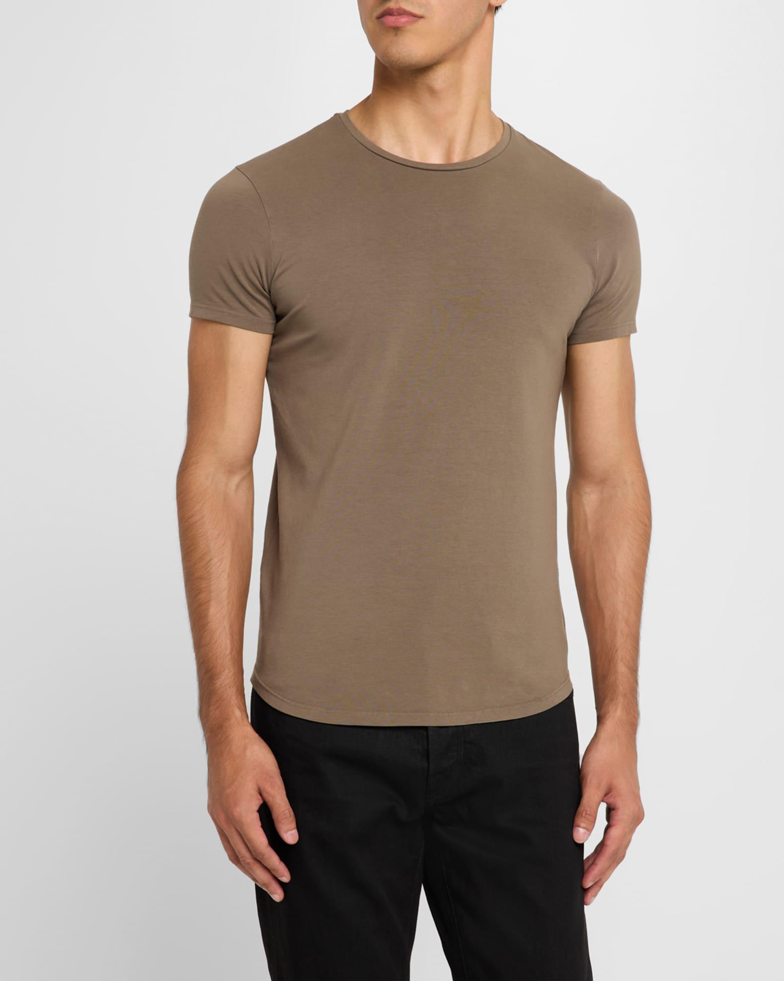 monfrere "Dann" T-shirt in super soft stretch jersey Crew neckline Short sleeves Classic fit Curved hem Pullover style Cotton/elastane Machine wash cold Made in USA from imported materials Model is 6'1"/185cm.