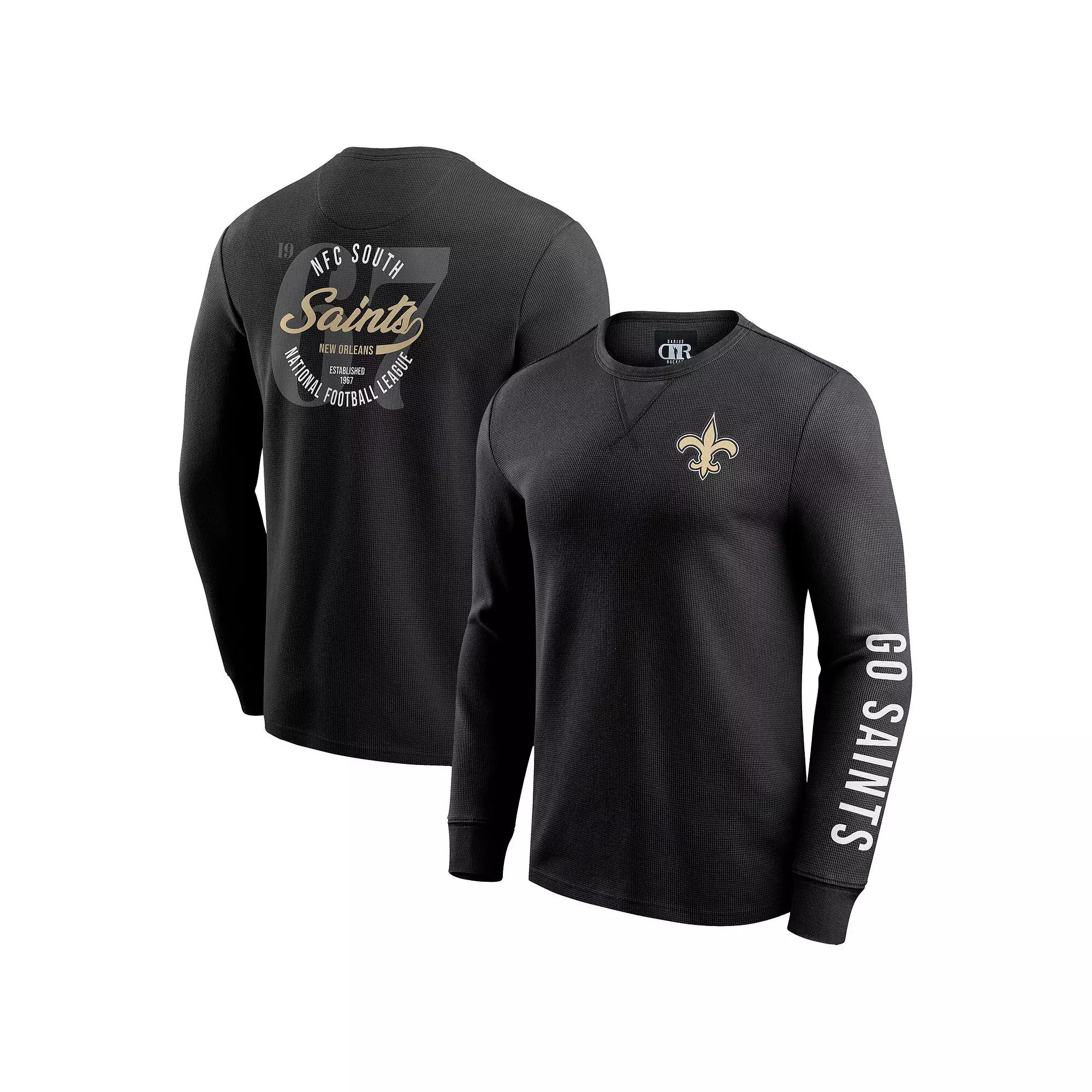 Embrace effortless style and your New Orleans Saints pride with this Washed Waffle-Knit Long Sleeve T-Shirt from the Darius Rucker Collection by Fanatics. The washed waffle-knit fabric creates a lived-in look and feel, adding a touch of vintage charm to your game day attire. With a screen-printed team wordmark on the left sleeve and team graphic on the left chest, this tee lets you rep the Saints in style.Embrace effortless style and your New Orleans Saints pride with this Washed Waffle-Knit Long Sleeve T-Shirt from the Darius Rucker Collection by Fanatics. The washed waffle-knit fabric creates a lived-in look and feel, adding a touch of vintage charm to your game day attire. With a screen-printed team wordmark on the left sleeve and team graphic on the left chest, this tee lets you rep the Saints in style.PRODUCT FEATURESImportedOfficially licensedLong sleeveMaterial: 74% Cotton/26% PolyesterCrew neckWashed fabric for a worn-in lookTeam graphic screen printed on left chestScreen printed team wordmark on left sleeveWaffle-knit fabricBrand: Darius Rucker Collection by FanaticsMachine wash, tumble dry lowNFL Division and founding year screen printed on back Color: Black. Gender: male. Age Group: adult.