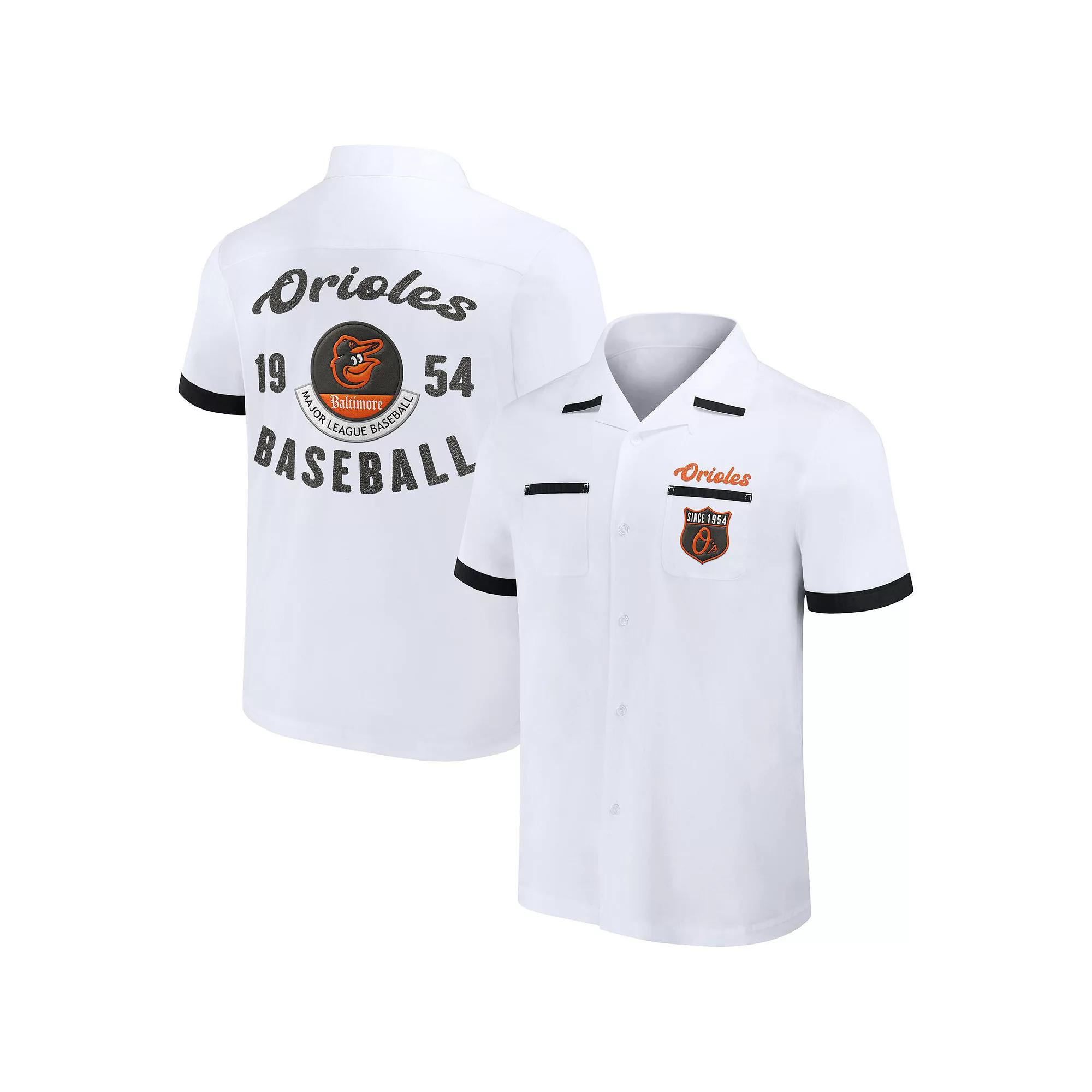 Look sharp on game day in a fun way with this Baltimore Orioles Bowling shirt from Darius Rucker Collection by Fanatics. Its button-up design features elevated Baltimore Orioles graphics on the front and displayed across the back. Contrast-color trim highlights the team details and your team pride.Look sharp on game day in a fun way with this Baltimore Orioles Bowling shirt from Darius Rucker Collection by Fanatics. Its button-up design features elevated Baltimore Orioles graphics on the front and displayed across the back. Contrast-color trim highlights the team details and your team pride.Chain stitch graphicsBrand: Darius Rucker Collection by FanaticsEmbroidered fabric appliquesTwo chest pocketsFull-button frontImportedMaterial: 97% Cotton/3% ElastaneShort sleeveMachine wash with garment inside out, tumble dry lowBack yoke seamOfficially licensed Size: XL. Color: White. Gender: male. Age Group: adult.