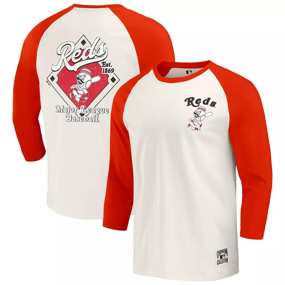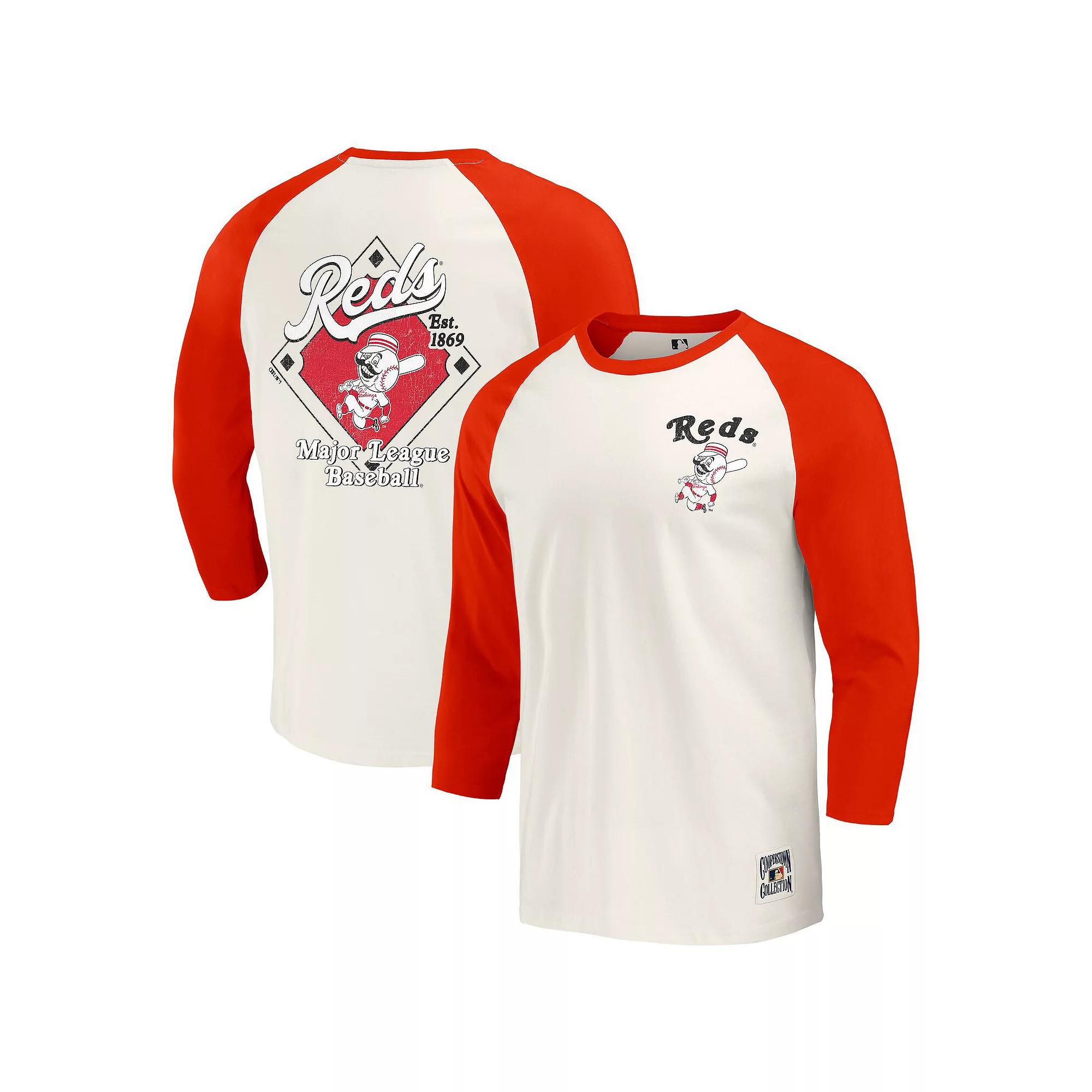 Celebrate the rich history of the Cincinnati Reds with this Darius Rucker Collection by Fanatics Cooperstown Collection Raglan 3/4-Sleeve T-Shirt. Its distressed screen print graphics give this tee a vintage look, reminiscent of classic baseball style. With comfortable raglan sleeves and a crew neck, it provides a relaxed fit that's perfect for a day at the ballpark or a casual outing.Celebrate the rich history of the Cincinnati Reds with this Darius Rucker Collection by Fanatics Cooperstown Collection Raglan 3/4-Sleeve T-Shirt. Its distressed screen print graphics give this tee a vintage look, reminiscent of classic baseball style. With comfortable raglan sleeves and a crew neck, it provides a relaxed fit that's perfect for a day at the ballpark or a casual outing.PRODUCT FEATURESMaterial: 100% CottonOfficially licensed3/4 Length sleeveMachine wash, tumble dry lowRaglan sleevesImportedBrand: Darius Rucker Collection by FanaticsCrew neckDistressed screen print graphics Color: Red Black. Gender: male. Age Group: adult.