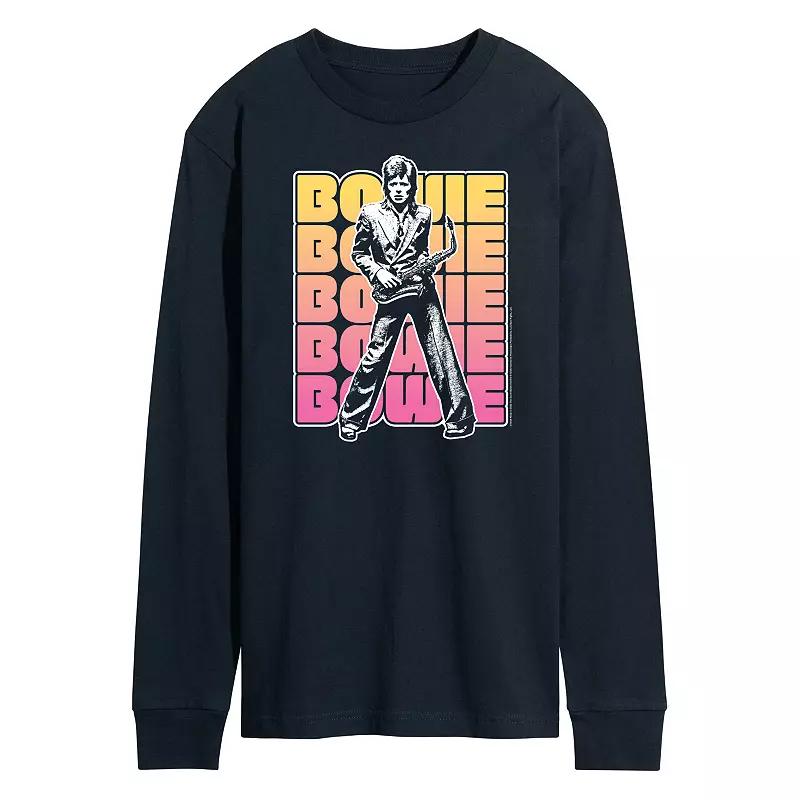 Show love for your favorite rock star with this Mens David Bowie Long Sleeve Tee. Show love for your favorite rock star with this Mens David Bowie Long Sleeve Tee. FEATURES Crewneck Long sleeveFABRIC & CARE Solid: cotton; heathered: cotton, polyester Machine wash Imported Size: XXL. Color: Navy. Gender: male. Age Group: adult. Pattern: Graphic.
