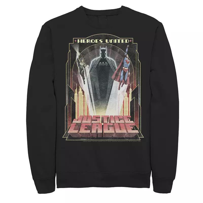 Join the team with this mens Justice League sweatshirt. Join the team with this mens Justice League sweatshirt. Crewneck Long sleevesFABRIC & CARE Cotton, polyester Machine wash Imported Color: Black. Gender: male. Age Group: adult. Pattern: Graphic. Material: Cotton Blend.