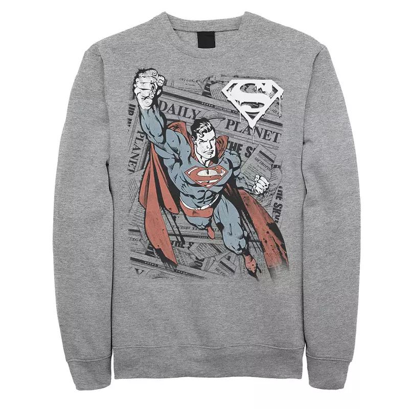 Extra! Extra! Read all about it. This mens Superman sweatshirt is a must-have. Crewneck Long sleevesFABRIC & CARE Cotton, polyester Machine wash Imported Extra! Extra! Read all about it. This mens Superman sweatshirt is a must-have. DC Comics Extra! Extra! Read all about it. This mens Superman sweatshirt is a must-have. Color: Grey. Gender: male. Age Group: adult. Material: Fleece.