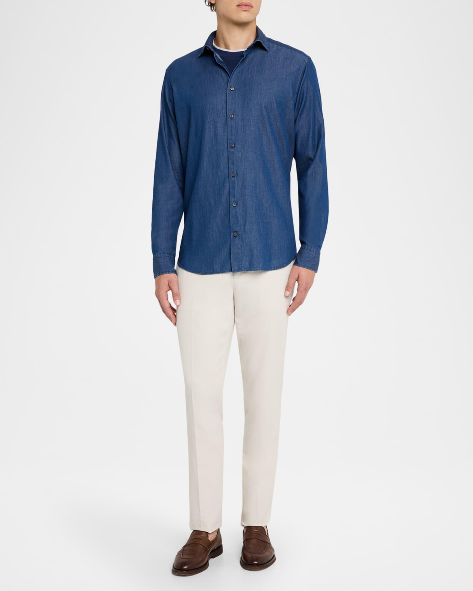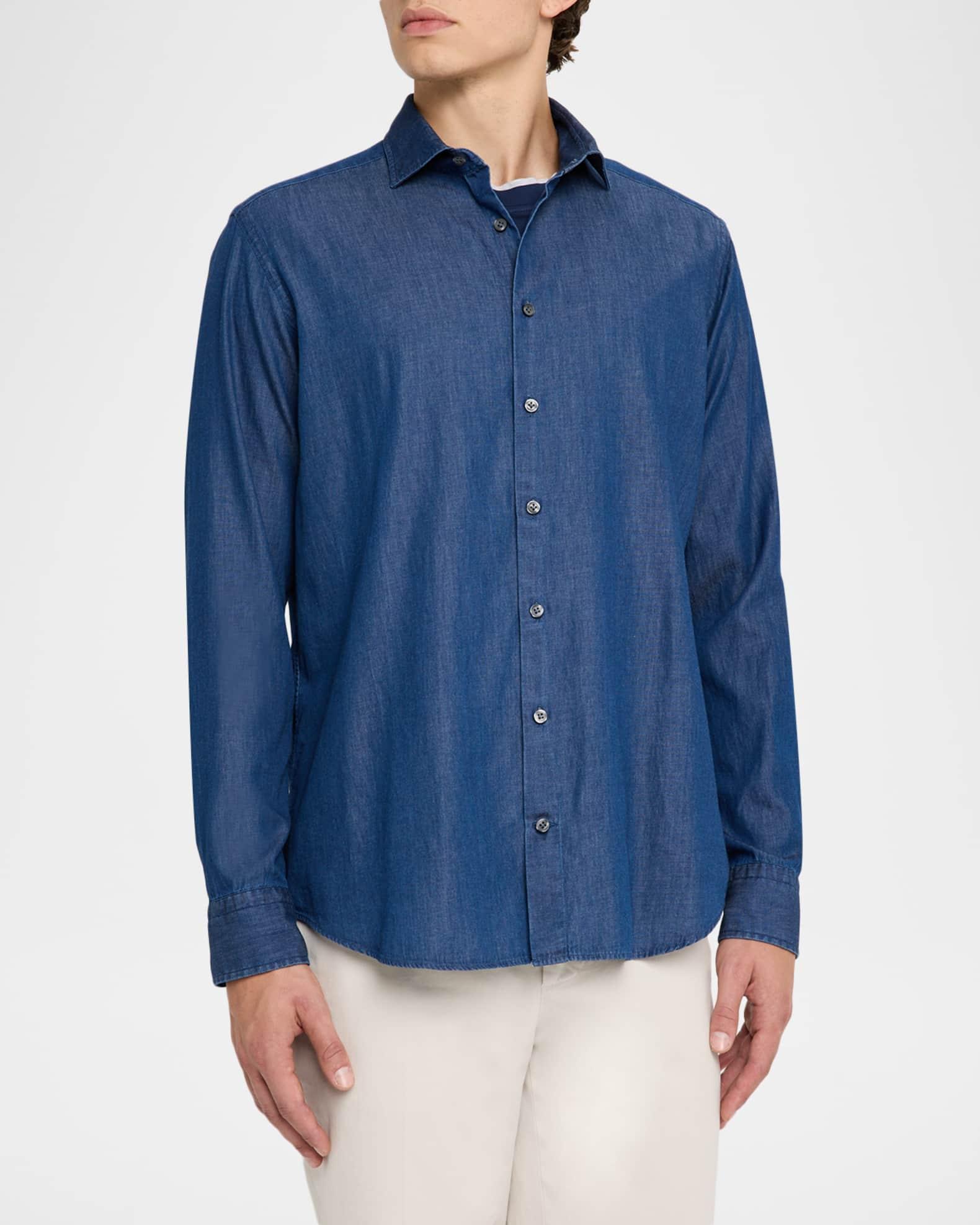 Men's Denim Spread-Collar Sport Shirt