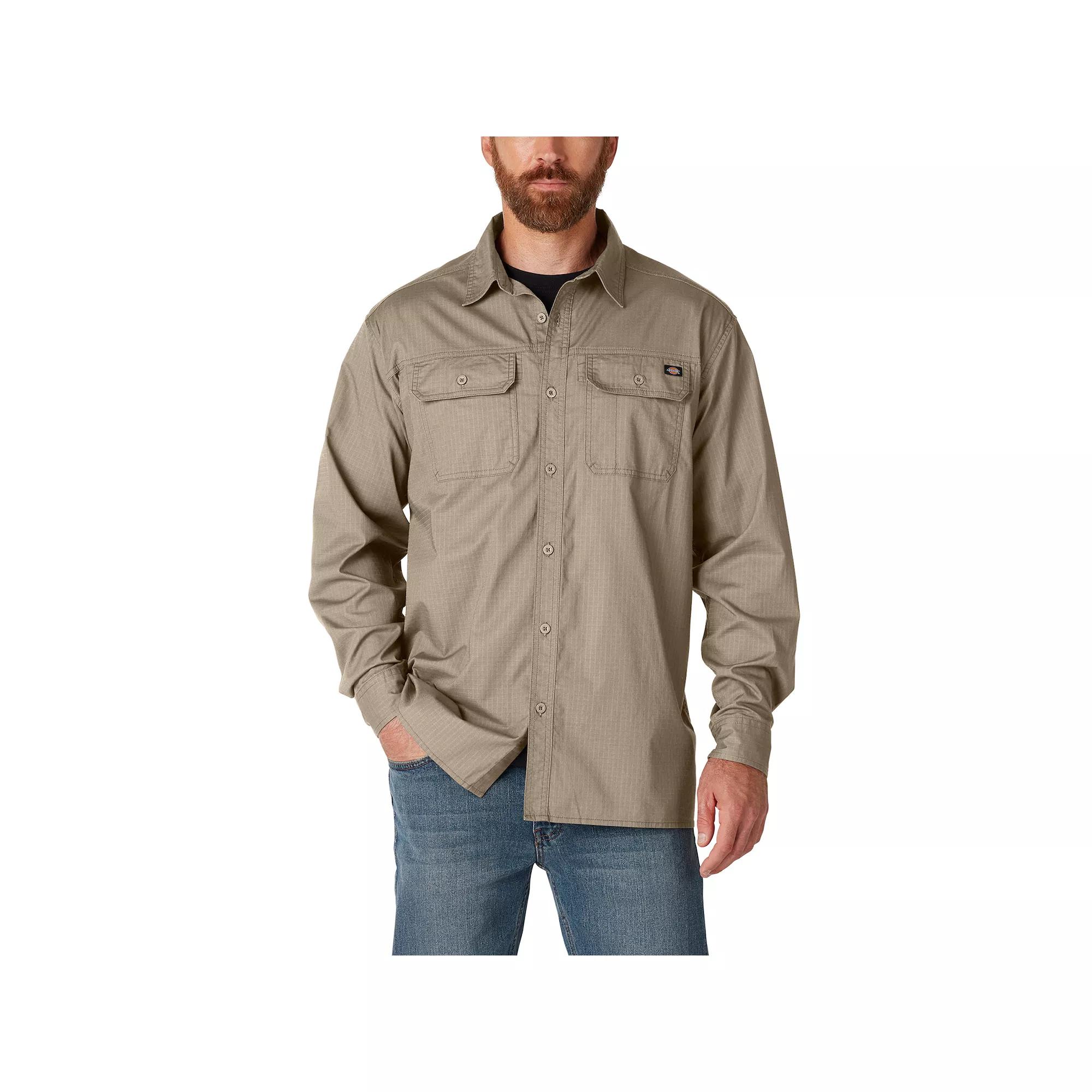 Find style that works as hard as you do with this mens Dickies button-down shirt. Find style that works as hard as you do with this mens Dickies button-down shirt. Flex fabric provides stretch comfort and ease of movement Durable seams Moisture-wicking fabric Brushed flannel fabric Faux-horn buttons Button front 2 chest pockets with pencil division Long sleevesFIT & SIZING Relaxed fitFABRIC & CARE Cotton, elastane, spandex Machine wash Imported Size: XL. Color: Beig/Khaki. Gender: male. Age Group: adult. Pattern: Solid.