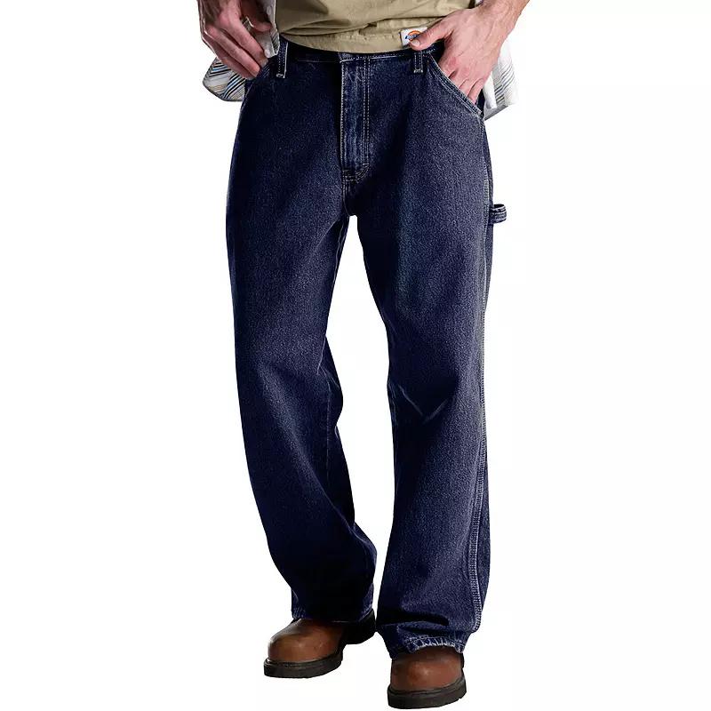 Dickies carpenter jeans keep comfort and durability on the level. These Dickies Relaxed Fit carpenter jeans boast a tough denim construction and handy tool pockets that hold up no matter your task. Whether for the job site or backyard projects, square up with more mens Dickies apparel from Kohls.com.Watch the product video here. Relaxed Fit features a slightly tapered leg with extra room through the seat and thigh for maximum comfort. Bootcut styling easily fits over your work boots. Dual tool pockets and a hammer loop keep essentials at hand. Denim construction with triple-stitched seams, rivets at all stress points and a heavy-duty brass zipper help ensure lasting wear. 7-pocket Zipper fly FABRIC & CARE Cotton Machine wash Imported Size: 34X34. Color: Blue. Gender: male. Age Group: adult.