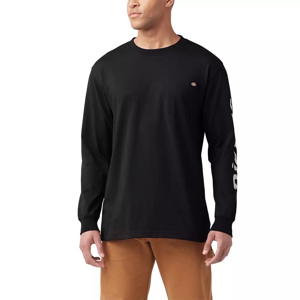 If comfort is what youre working towards, this mens Dickies tee is a must-have. If comfort is what youre working towards, this mens Dickies tee is a must-have. FEATURES Button placket Tagless design Heavyduty fabric keeps you warm Long sleevesFIT & SIZING Relaxed fitFABRIC & CARE Cotton, polyester Machine wash Imported Size: XL. Color: Black. Gender: male. Age Group: adult. Pattern: Solid.