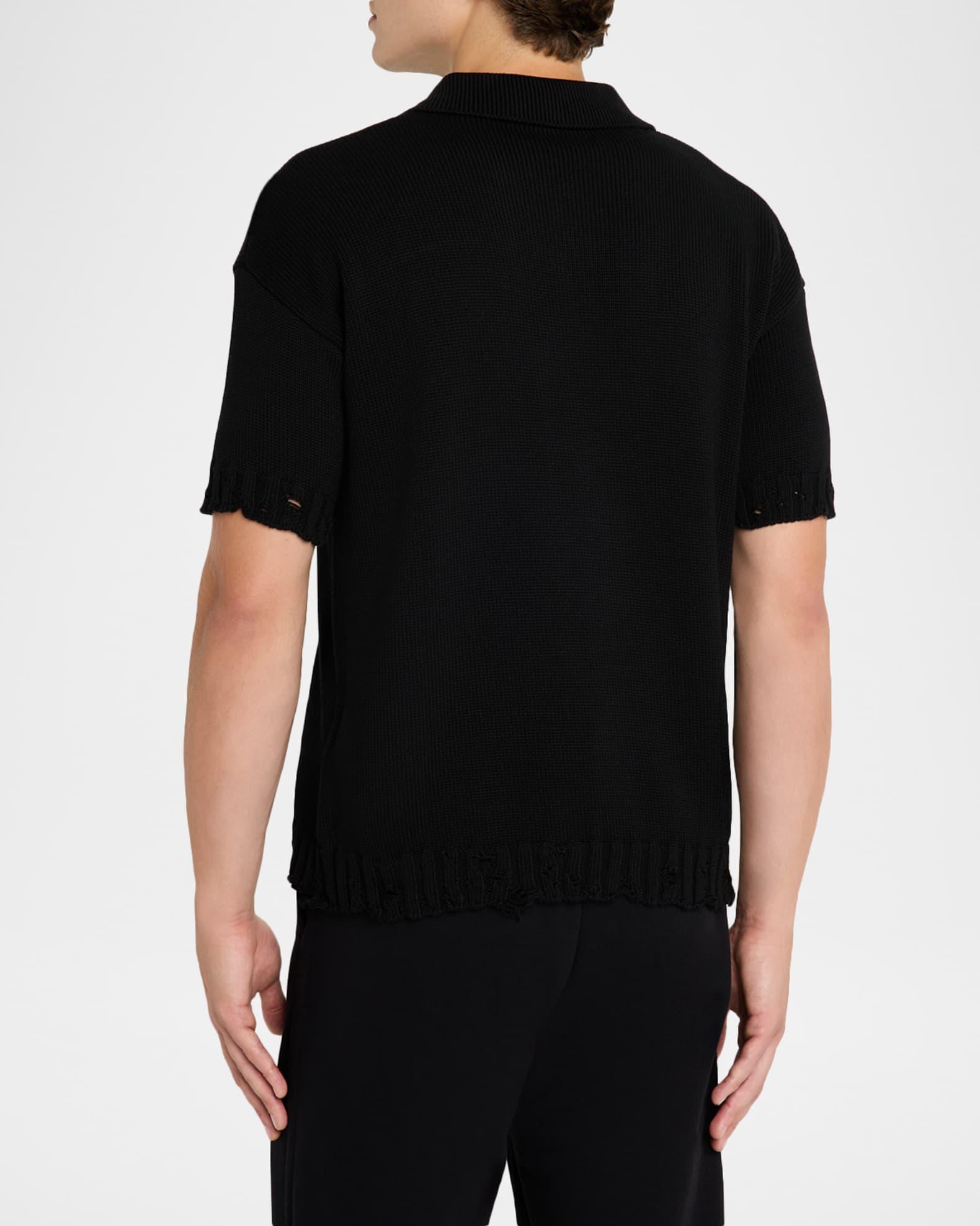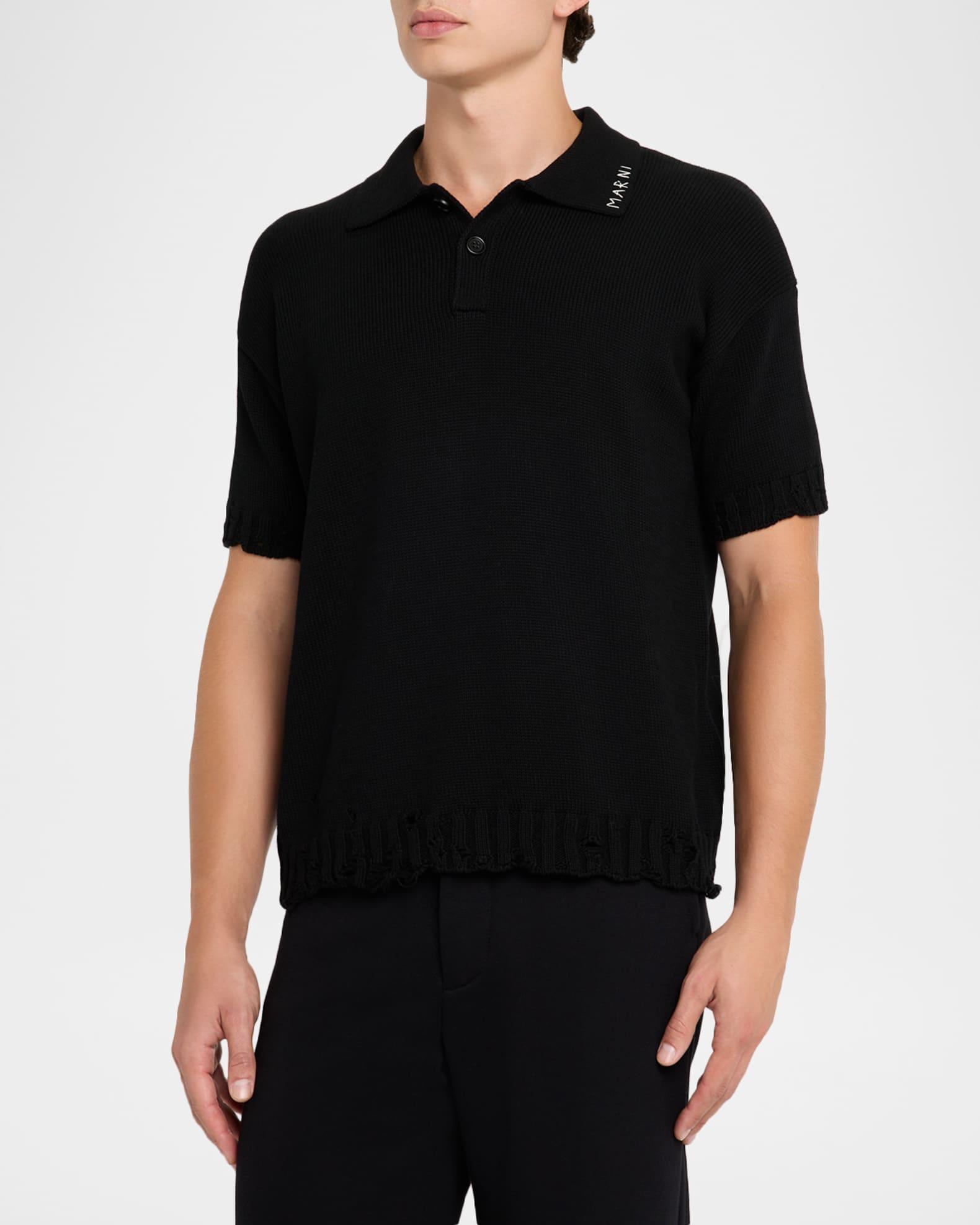 Men's Dishevelled Logo-Collar Knit Polo Shirt