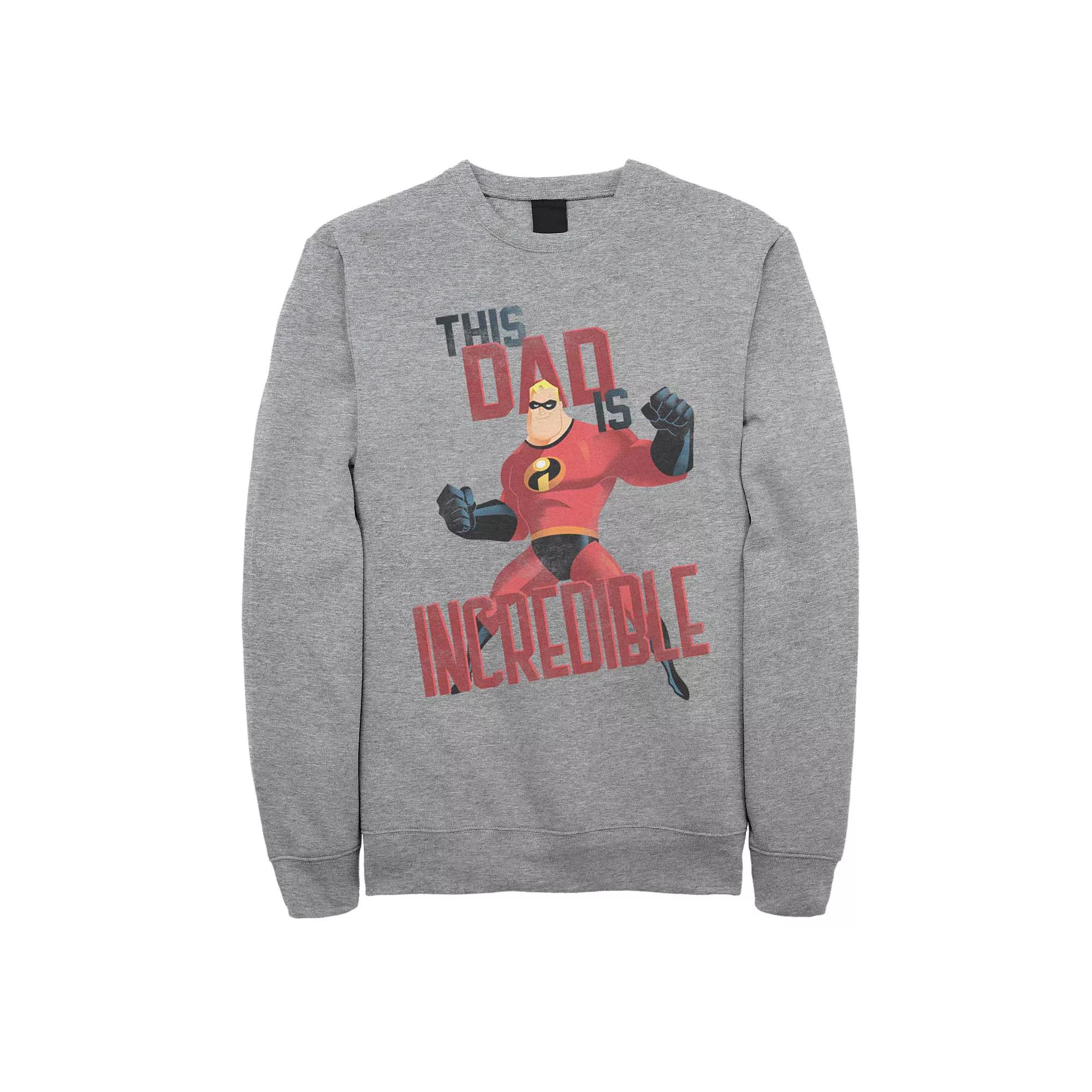Show some love for the greatest dad in the world with this Mens Disney Pixar Incredibles This Dad Is Incredible Fleece. Disney Athletic heather Crew neck Long sleevesFABRIC & CARE Cotton, polyester Machine wash Imported Color: Med Grey. Gender: male. Age Group: adult. Pattern: Graphic.
