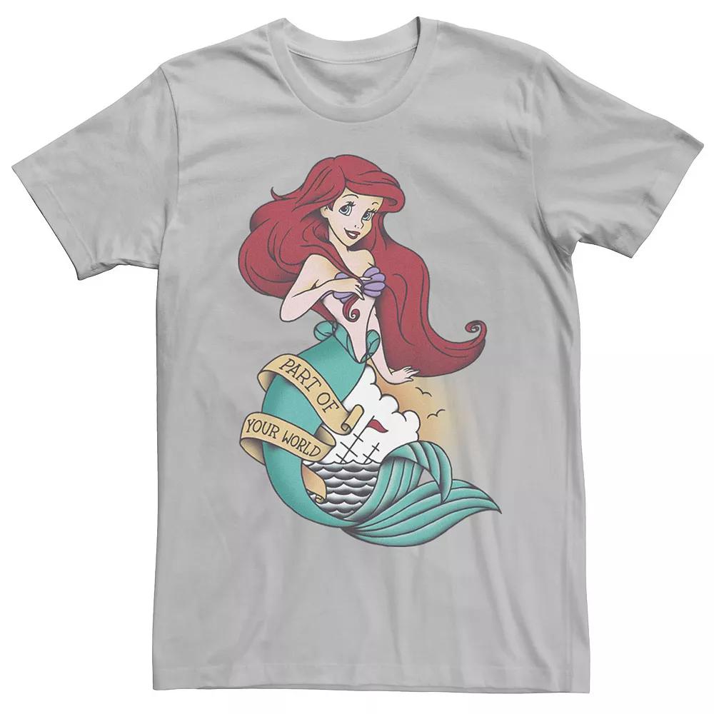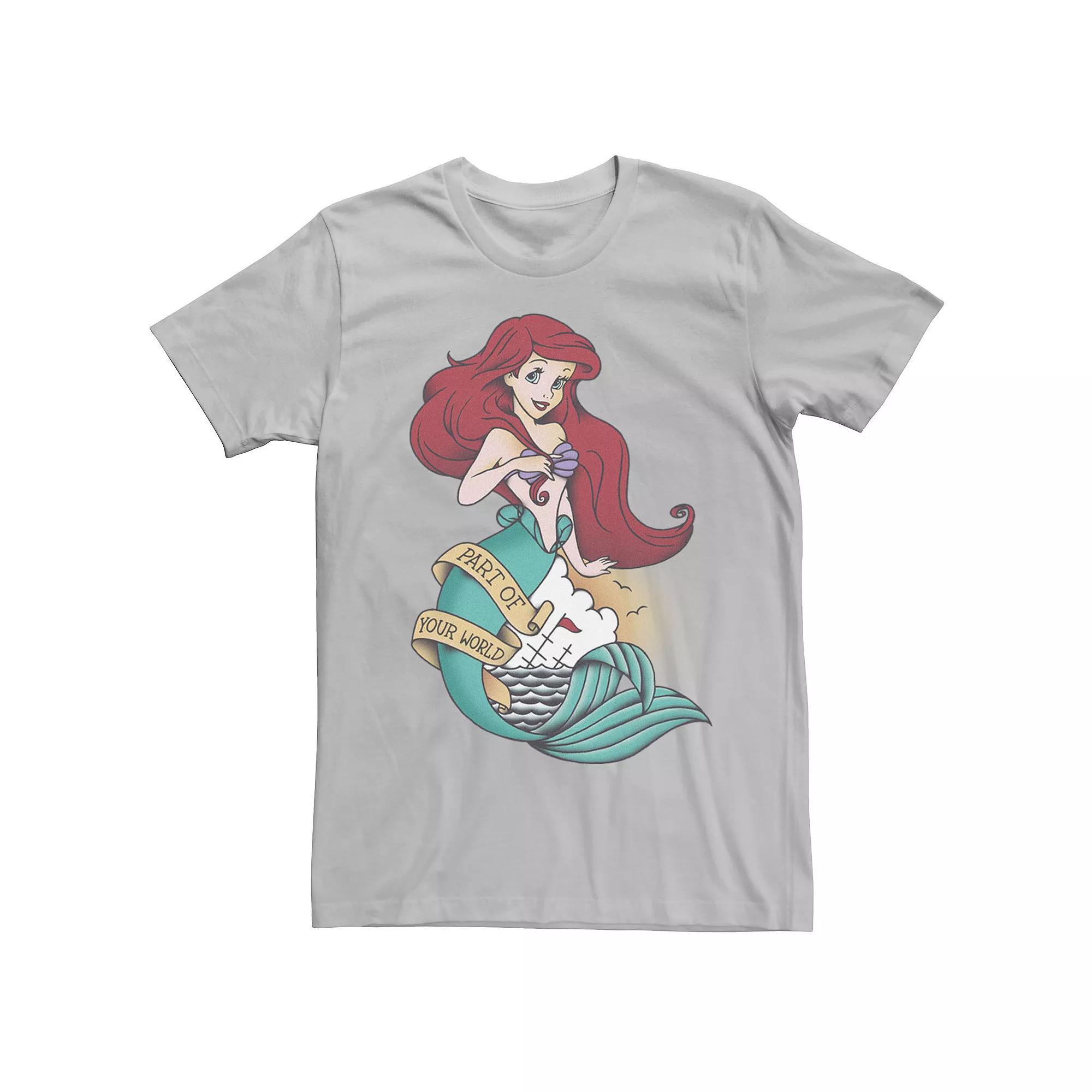 With a vintage tattoo style, this The Little Mermaid tee is a unique addition to any Disney fans wardrobe. Disney With a vintage tattoo style, this The Little Mermaid tee is a unique addition to any Disney fans wardrobe. Disney Crewneck Short sleeves Part of Your World messageFABRIC & CARE Cotton Machine wash Imported Color: Silver. Gender: male. Age Group: adult. Pattern: Graphic.
