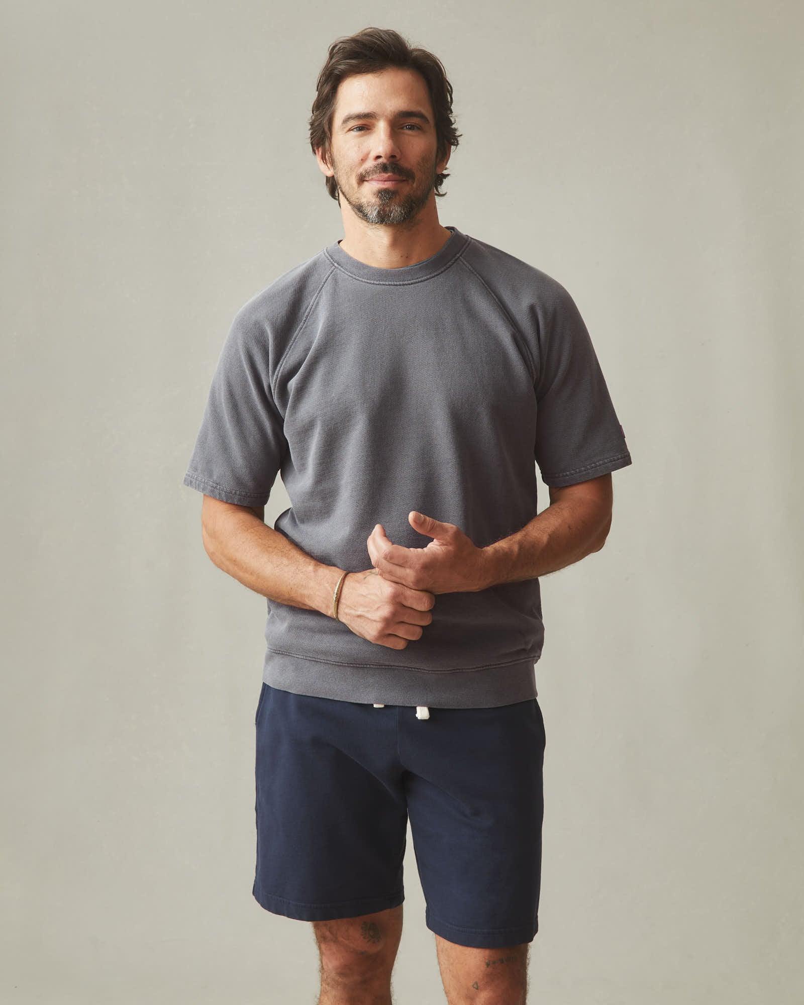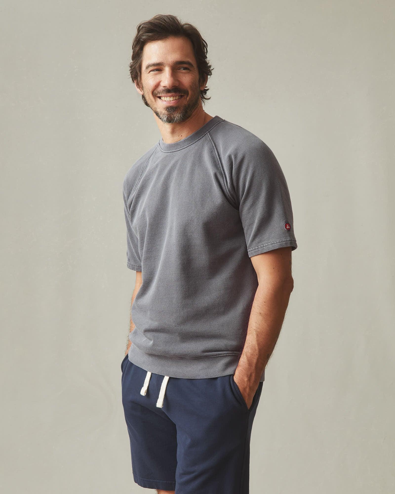 Men's Distressed French Terry Tee - Dark Charcoal