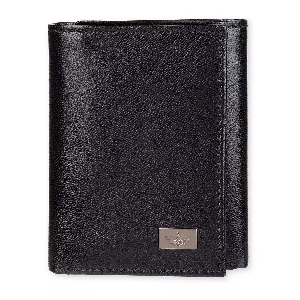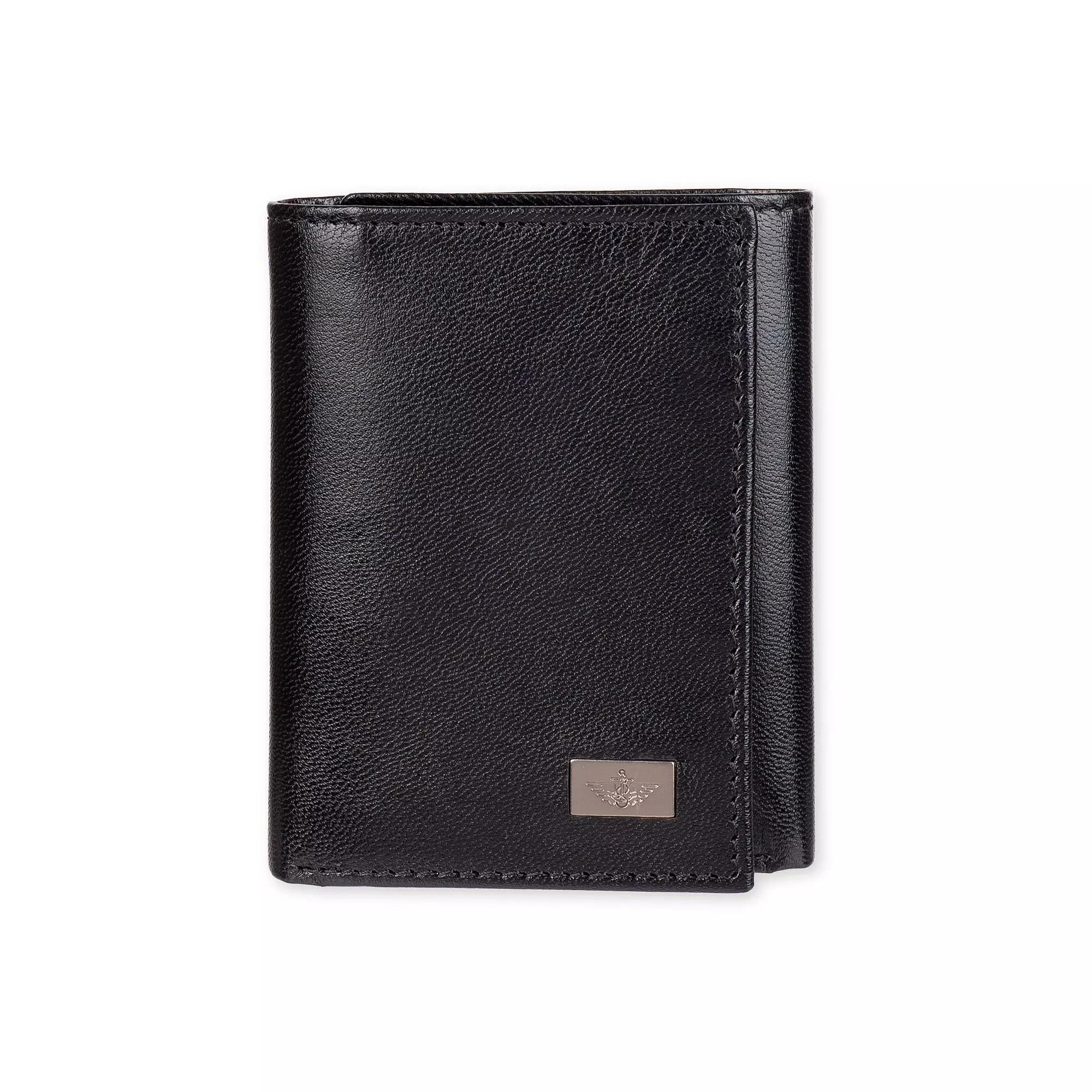 Wallet Type: TrifoldCard Capacity: 9 SlotsClosure Type: Fold OverPockets: 3 Inside Multi-Function Pockets, 9 Inside Card Slots, 1 Id WindowMeasurements: 5.15 Width/InchesBase Material: 100 LeatherFabric Description: LeatherCare: Wipe CleanCountry of Origin: Imported