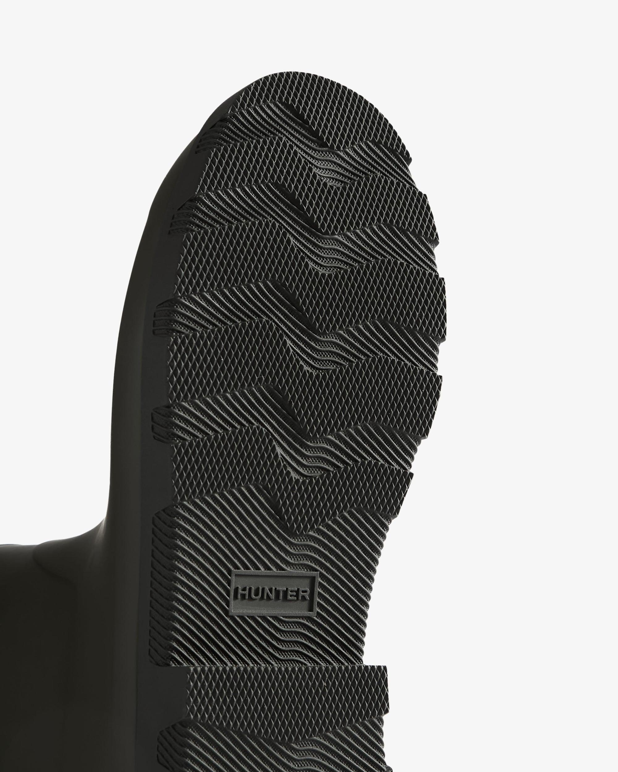 Men's Downpour Short Wellington Boot Size/Fit Summary: True to size, Regular fit. Introducing the newest addition to the Hunter family, our fully waterproof Men's Downpour Short Boot. With a sleek upper design and a lightweight moulded outsole, the unique tread has taken influence from natural shapes found in landscapes. Handcrafted and finished with a heritage topbind, this men's green short boot has been engineered to have a more modern and voluminous calf fit. We recommend that all Hunter boots be worn with socks to protect the wearer's skin from contact with rubber.