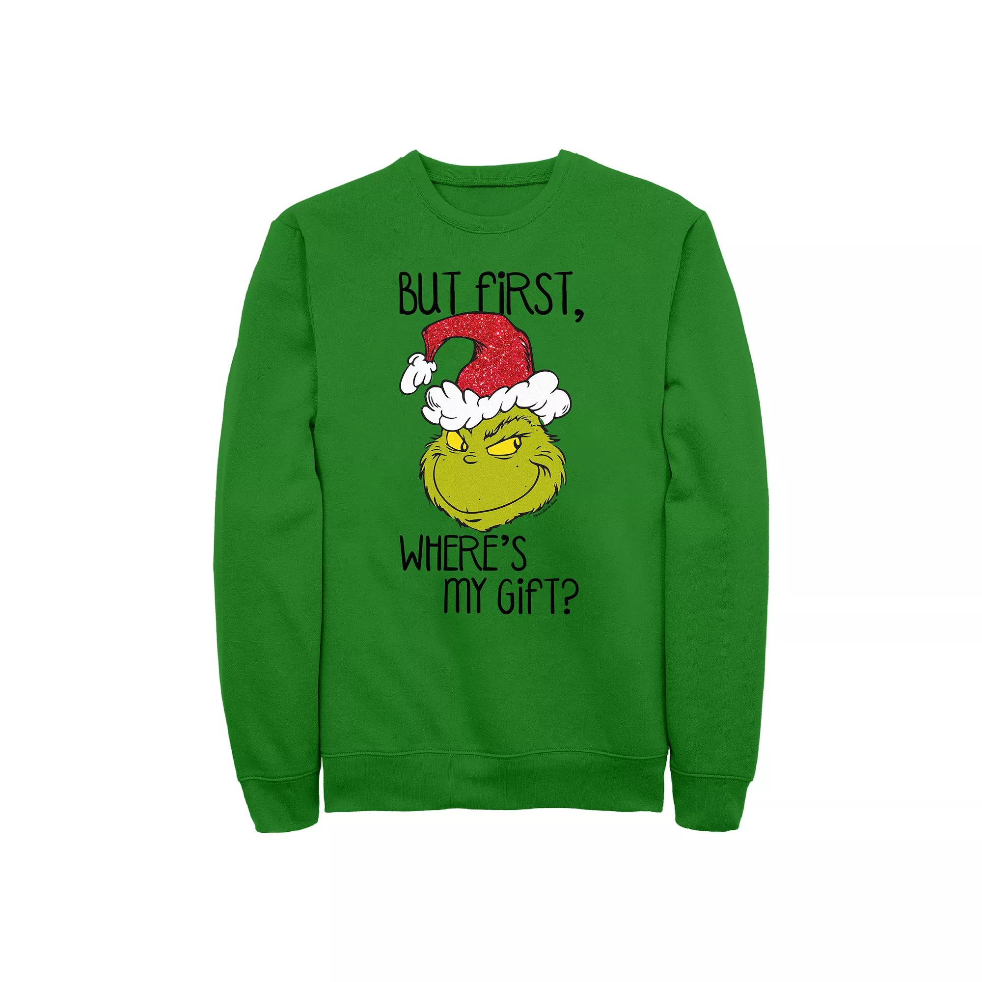 Get in the Holiday spirit with your favorite character in this Men's Dr. Seuss Grinch But First Where's My Gift Fleece Sweatshirt.Get in the Holiday spirit with your favorite character in this Men's Dr. Seuss Grinch But First Where's My Gift Fleece Sweatshirt.FEATURES Crewneck Long sleeveFABRIC & CARE Cotton, polyester Machine wash Imported Size: XL. Color: Kelly. Gender: male. Age Group: adult.