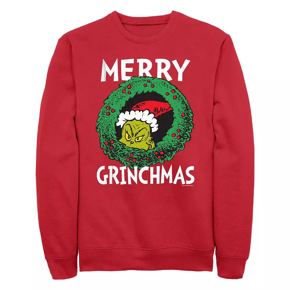 Get in the Holiday spirit with your favorite character in this Men's Dr. Seuss Grinch Merry Grinchmas Fleece Sweatshirt.FEATURES Crewneck Long sleeveFABRIC & CARE Cotton, polyester Machine wash Imported Color: Red. Gender: male. Age Group: adult.