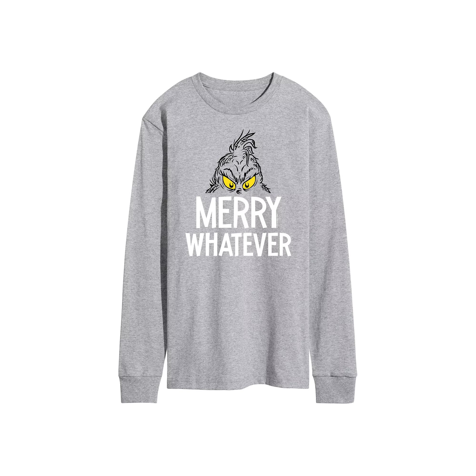 Keep the holiday spirit alive with this funny Dr. Seuss Grinch merry whatever long sleeve graphic tee. Keep the holiday spirit alive with this funny Dr. Seuss Grinch merry whatever long sleeve graphic tee. Crewneck Long sleevesFABRIC & CARE Cotton, polyester Machine wash Imported Color: Med Grey. Gender: male. Age Group: adult.