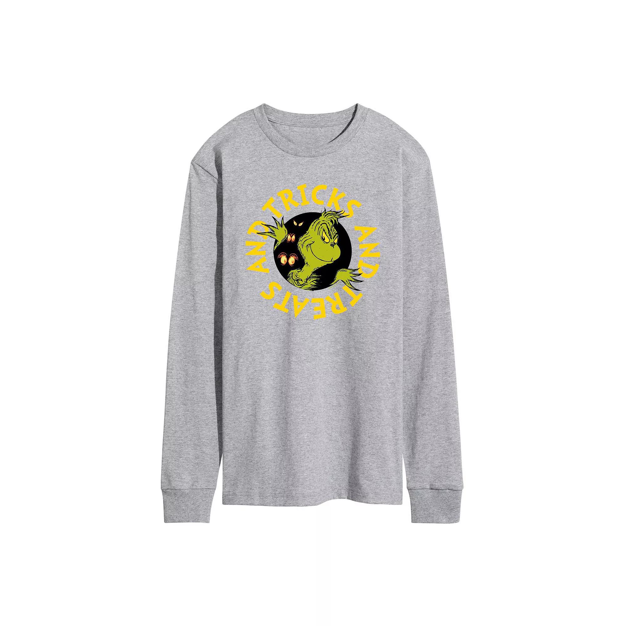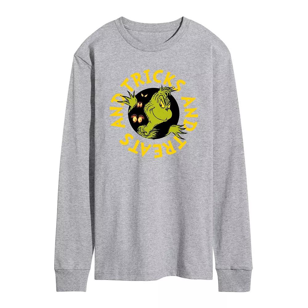 Give your wardrobe a spooktacular refresh with this Mens Dr. Seuss Grinch Tricks And Treats Long Sleeve Graphic Tee. Give your wardrobe a spooktacular refresh with this Mens Dr. Seuss Grinch Tricks And Treats Long Sleeve Graphic Tee. FEATURES Crewneck Long sleeveFABRIC & CARE Solid Color: Cotton ; Heather Colors: Cotton/Polyester Machine wash Imported Size: XS. Color: Heather Gray. Gender: male. Age Group: adult.