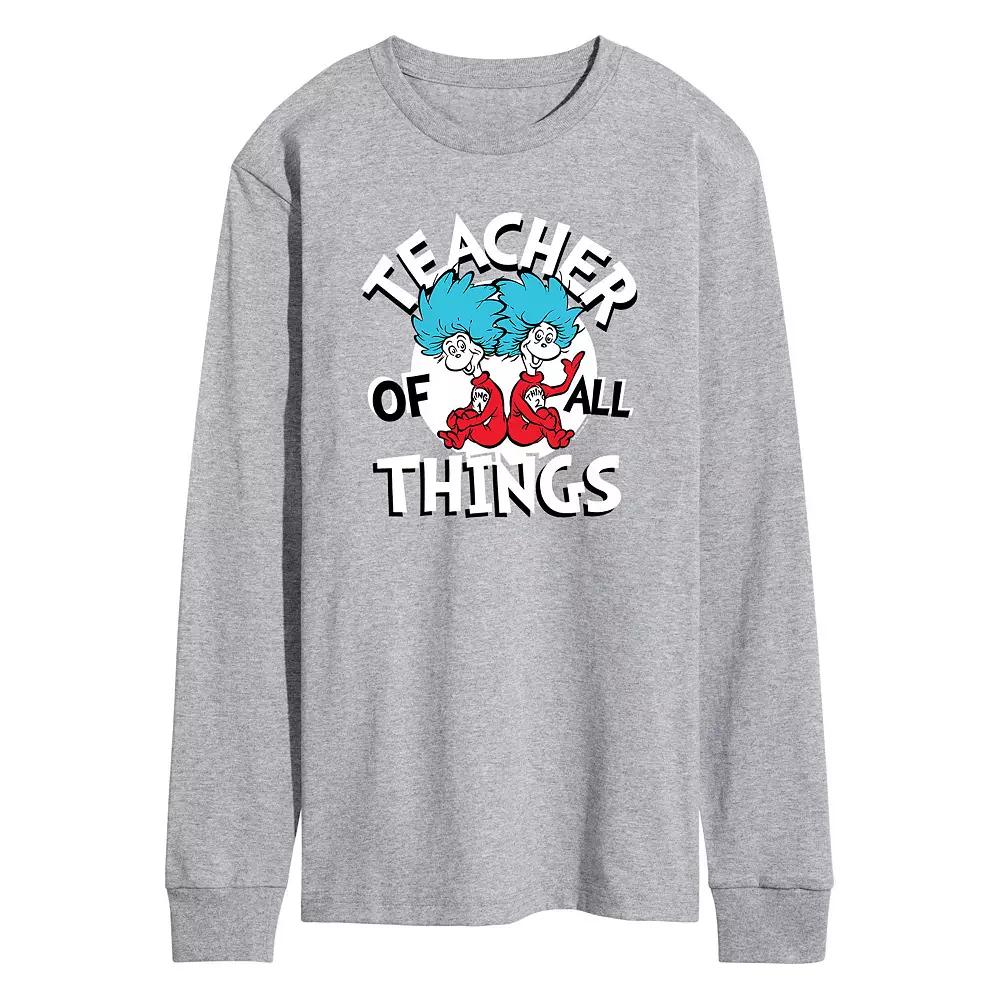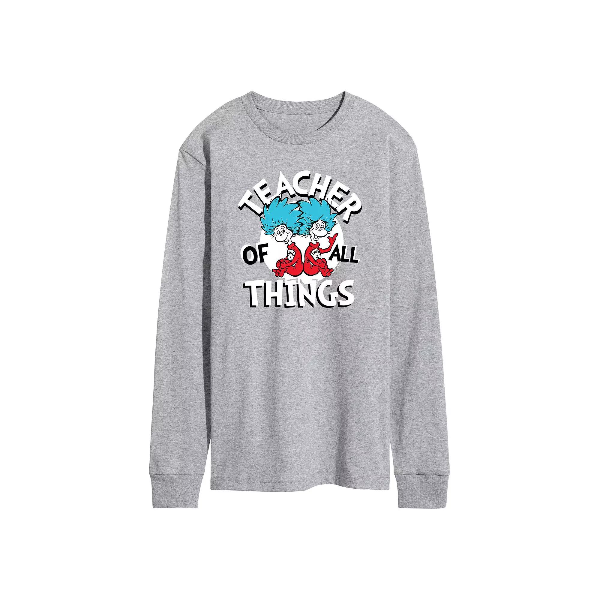 Every teacher can rock this Mens Dr. Seuss teacher of all things long sleeved tee. Every teacher can rock this Mens Dr. Seuss teacher of all things long sleeved tee. Crewneck Long sleevesFABRIC & CARE Cotton, polyester Machine wash Imported Size: XS. Color: Med Grey. Gender: male. Age Group: adult. Pattern: Graphic.