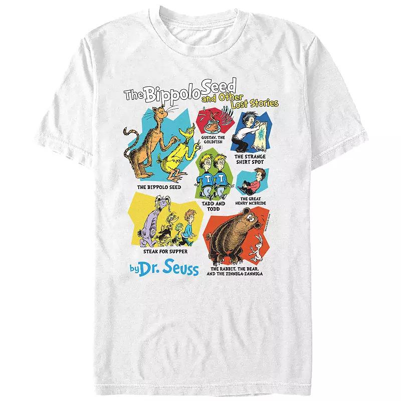 Youll love the fit and feel of this mens Dr. Seuss The Bippolo Seed And Other Lost Stories graphic tee.Youll love the fit and feel of this mens Dr. Seuss The Bippolo Seed And Other Lost Stories graphic tee.FEATURES Crewneck Short sleevesFABRIC & CARE Cotton Machine wash Imported Color: White. Gender: male. Age Group: adult.