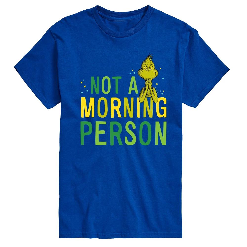 Dr. Seuss The Grinch - Christmas - Not A Morning Person - Men's Short Sleeve Graphic T-Shirt - Our collection of graphic apparel featuring officially licensed Dr. Seuss characters brings the whimsy and wonder of Seussville straight into your wardrobe. From the mischievous Cat in the Hat to the stinky Grinch each design showcases iconic characters and scenes from Dr. Seuss's timeless stories.
