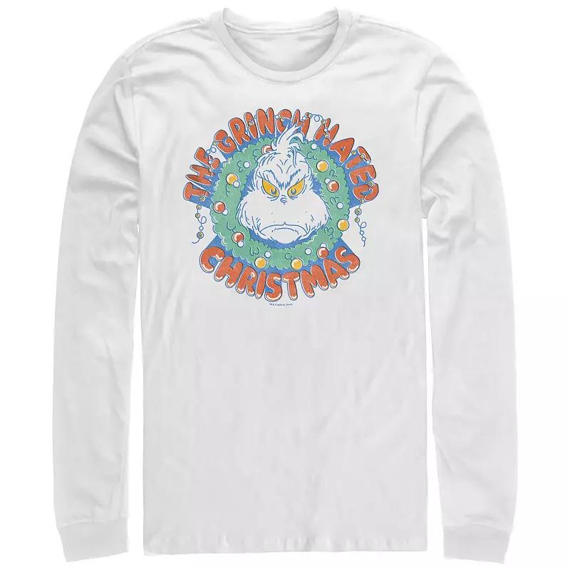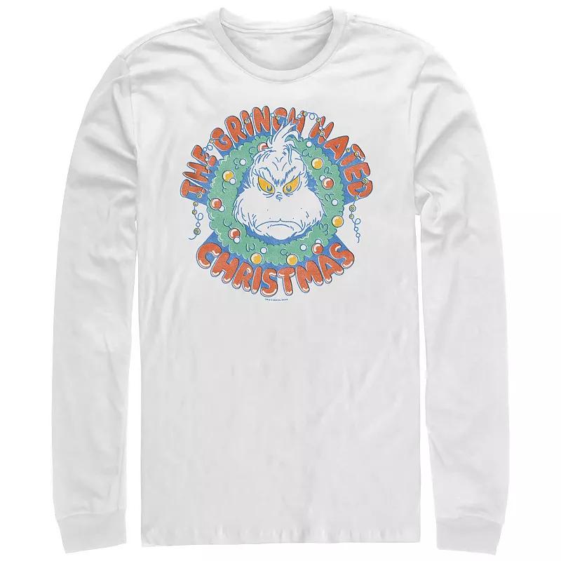 Youll love the fit and feel of this Big & Tall Dr. Seuss The Grinch Hated Christmas Wreath Long Sleeve Graphic Tee Youll love the fit and feel of this Big & Tall Dr. Seuss The Grinch Hated Christmas Wreath Long Sleeve Graphic Tee FEATURES Crewneck Long sleevesFABRIC & CARE Cotton Machine wash Imported Size: XL. Color: White. Gender: male. Age Group: adult.