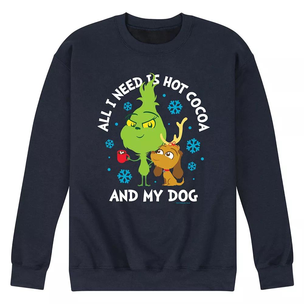 He will love showing off his style with this Mens Dr. Seuss The Grinch Hot Cocoa And My Dog Fleece Sweatshirt. FEATURES Crewneck Long sleeveFABRIC & CARE Cotton/Polyester Machine wash Imported Size: XXL. Color: Navy. Gender: male. Age Group: adult. Pattern: Graphic.