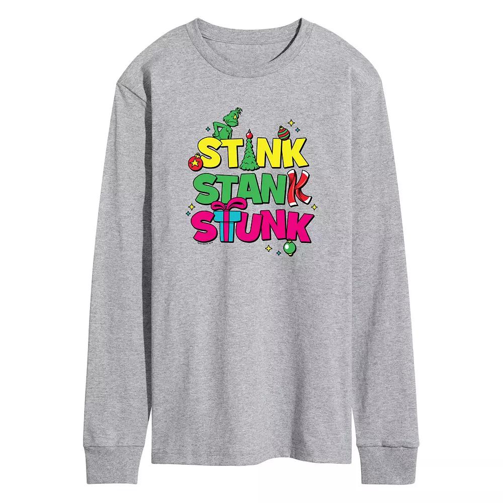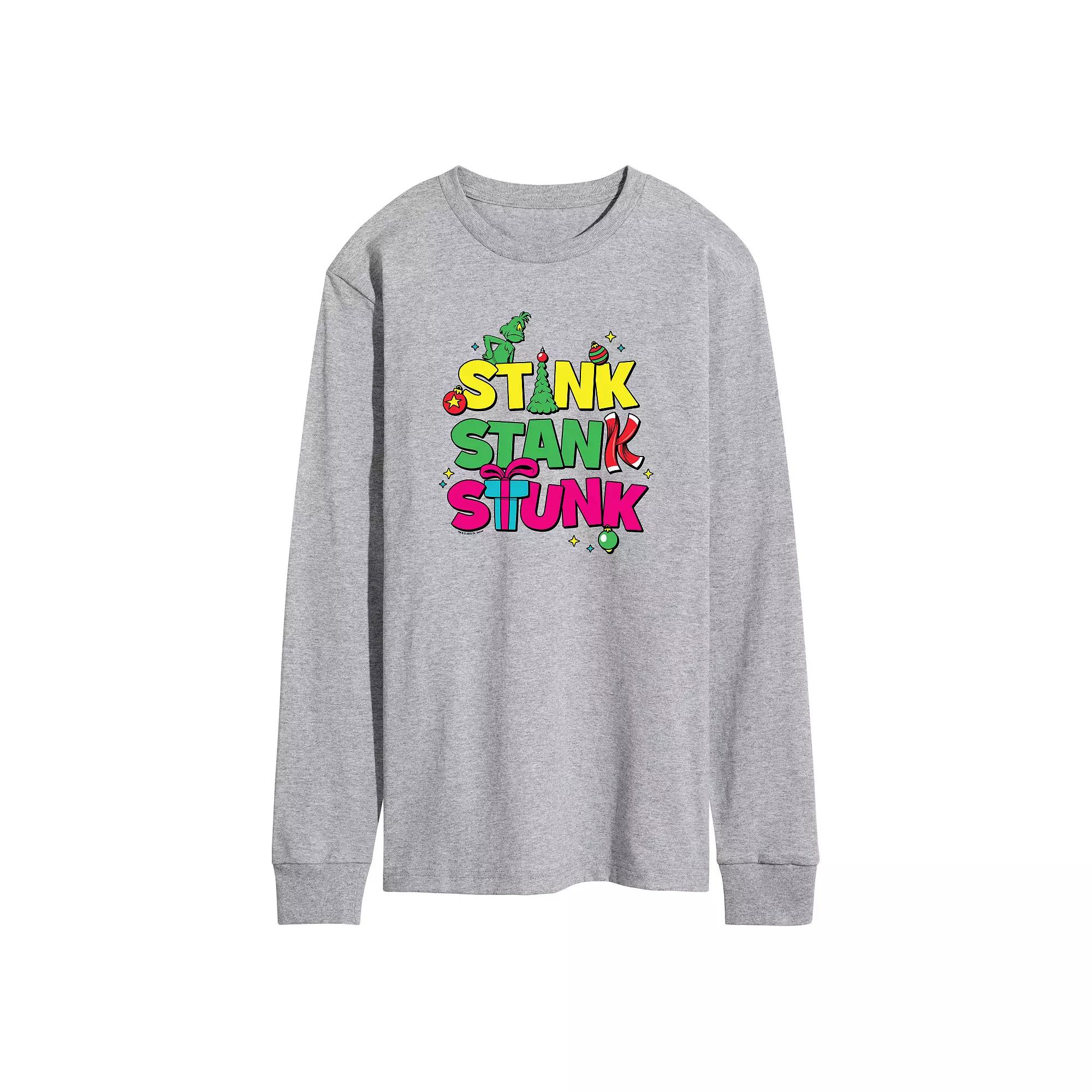 He will love showing off his style with this Mens Dr. Seuss The Grinch Stink Stank Stunk Long Sleeve Graphic Tee. FEATURES Crewneck Long sleeveFABRIC & CARE Solid Colors: Cotton ; Heather Colors: Cotton/Polyester Machine wash Imported Color: Med Grey. Gender: male. Age Group: adult.