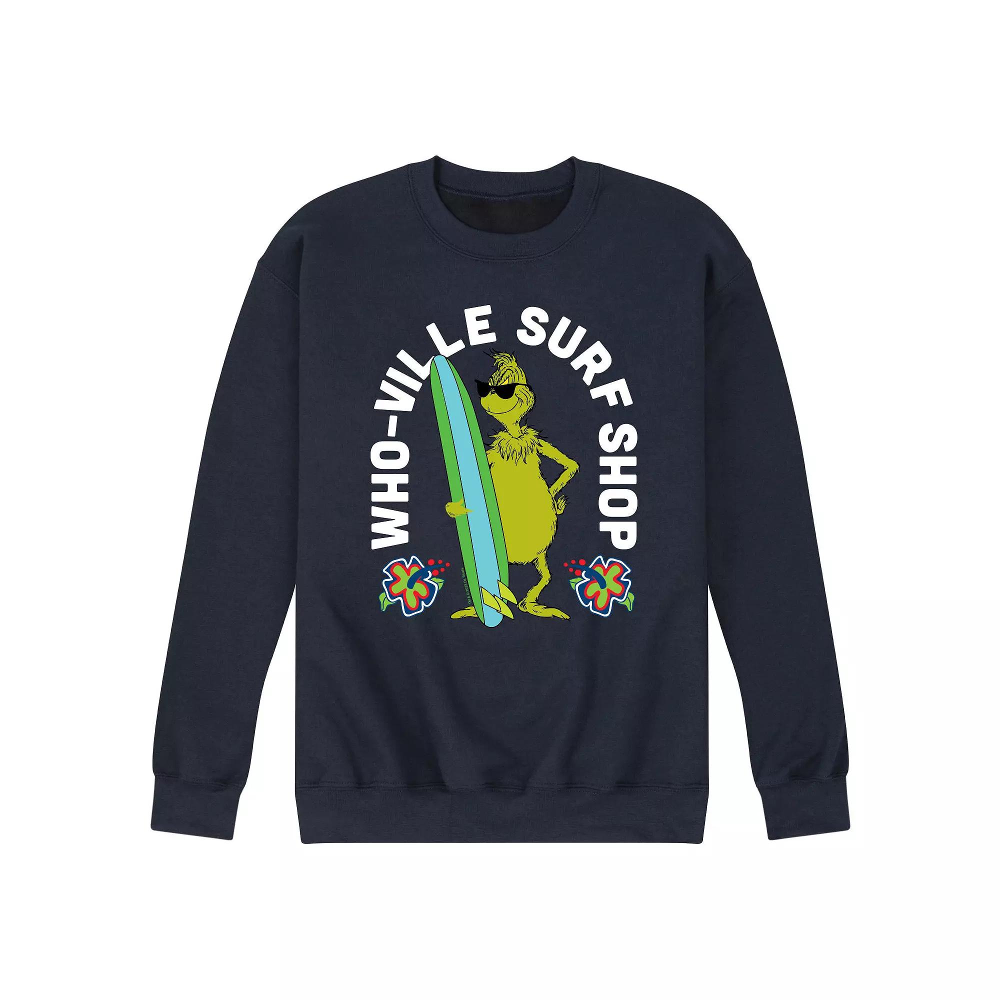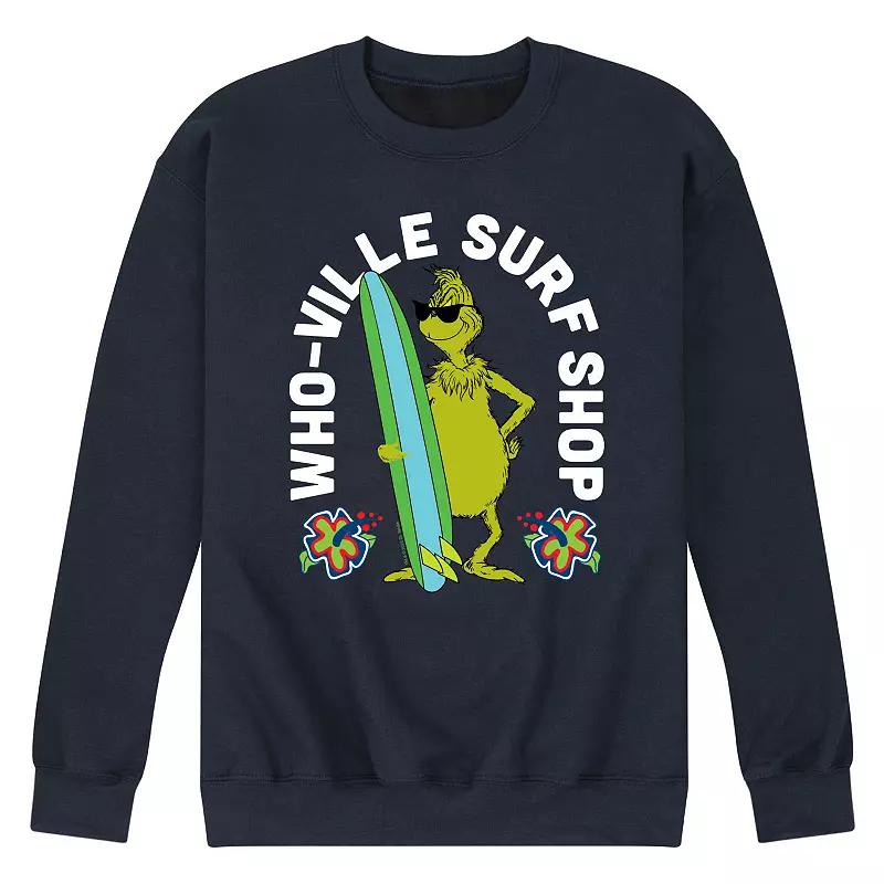 He will love showing off his style with this Mens Dr. Seuss The Grinch Whoville Surf Shop Fleece Sweatshirt. FEATURES Crewneck Long sleeveFABRIC & CARE Cotton/Polyester Machine wash Imported Color: Navy. Gender: male. Age Group: adult. Pattern: Graphic.