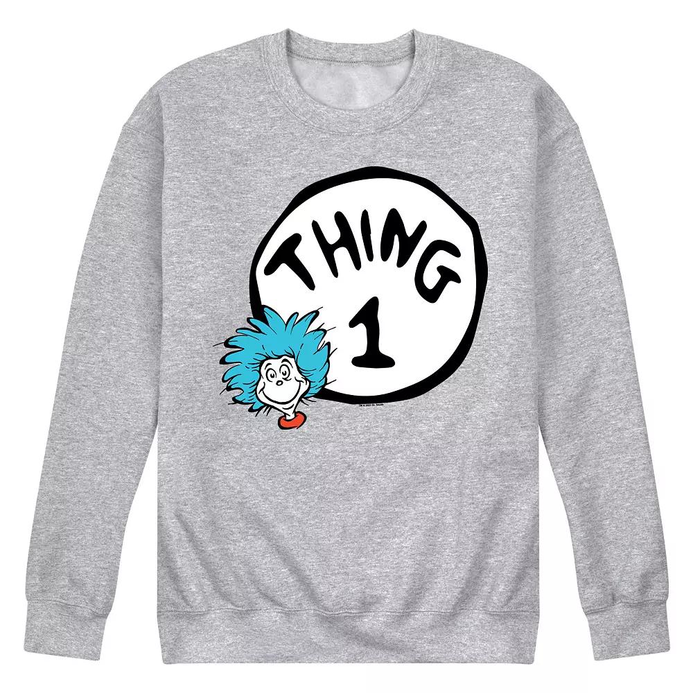 Dress with delightful style when you wear this Mens Dr Seuss Thing One Graphic Sweatshirt. Dress with delightful style when you wear this Mens Dr Seuss Thing One Graphic Sweatshirt. FEATURES Crewneck Long sleevesFABRIC & CARE Cotton, polyester Machine wash Imported Color: Med Grey. Gender: male. Age Group: adult.