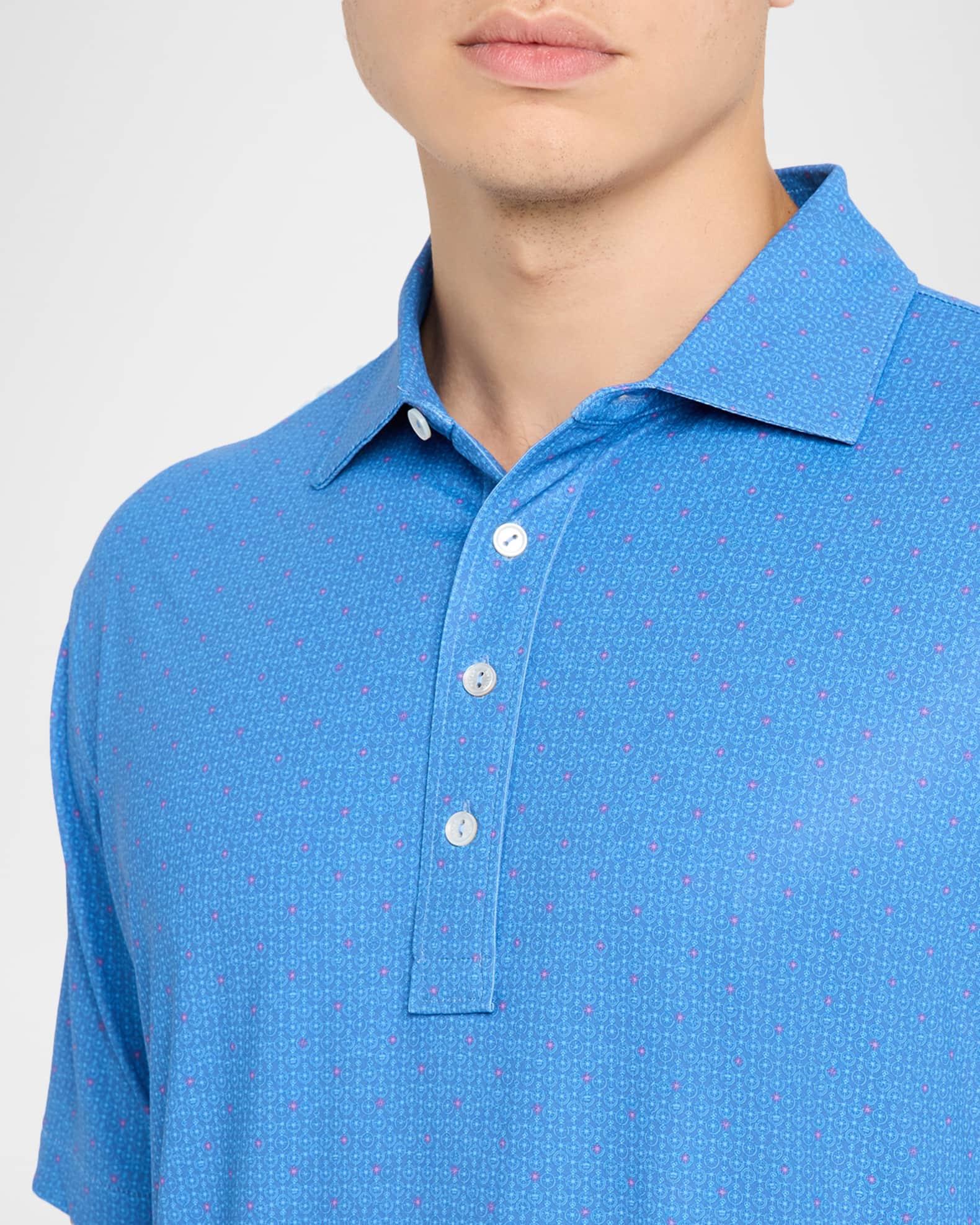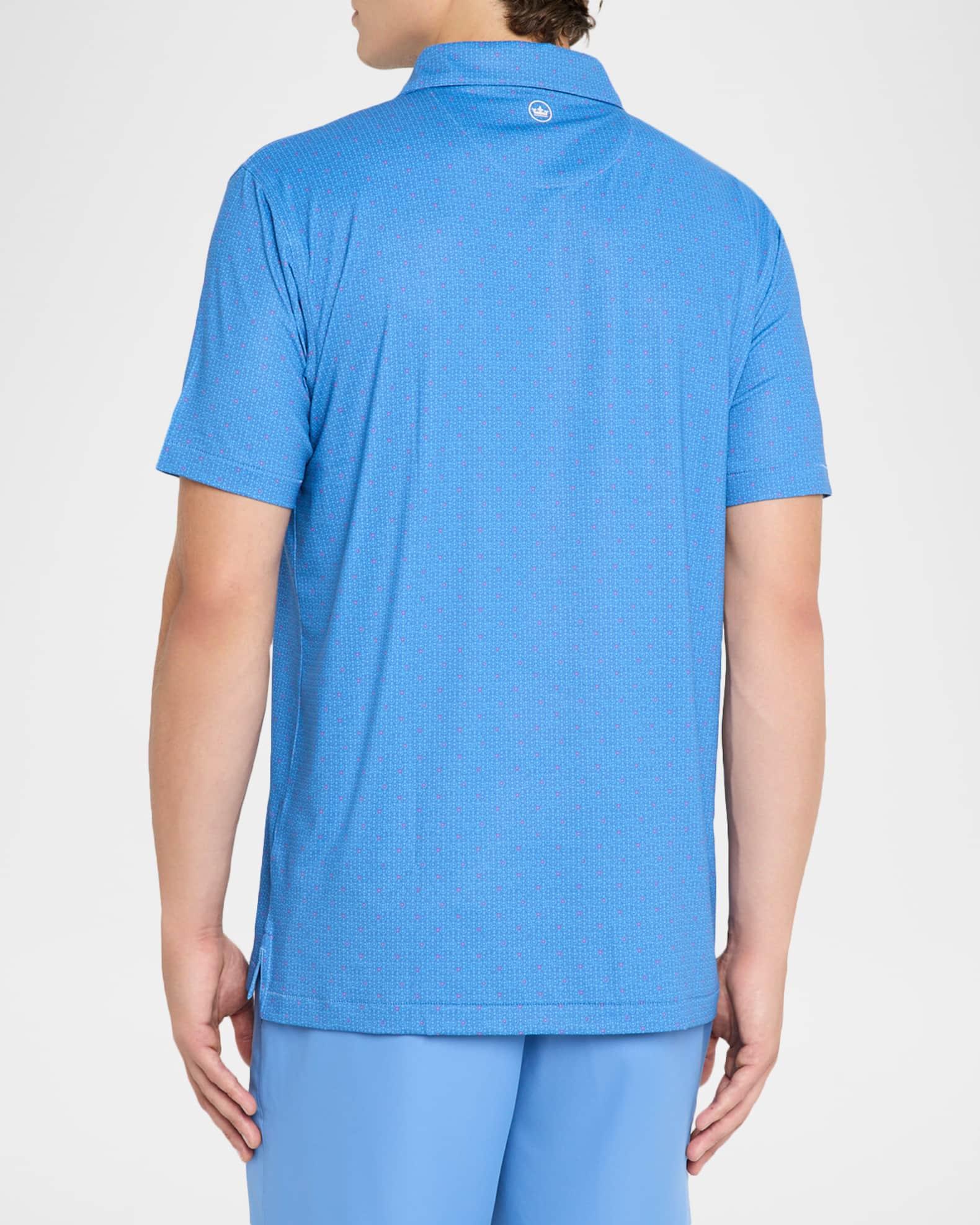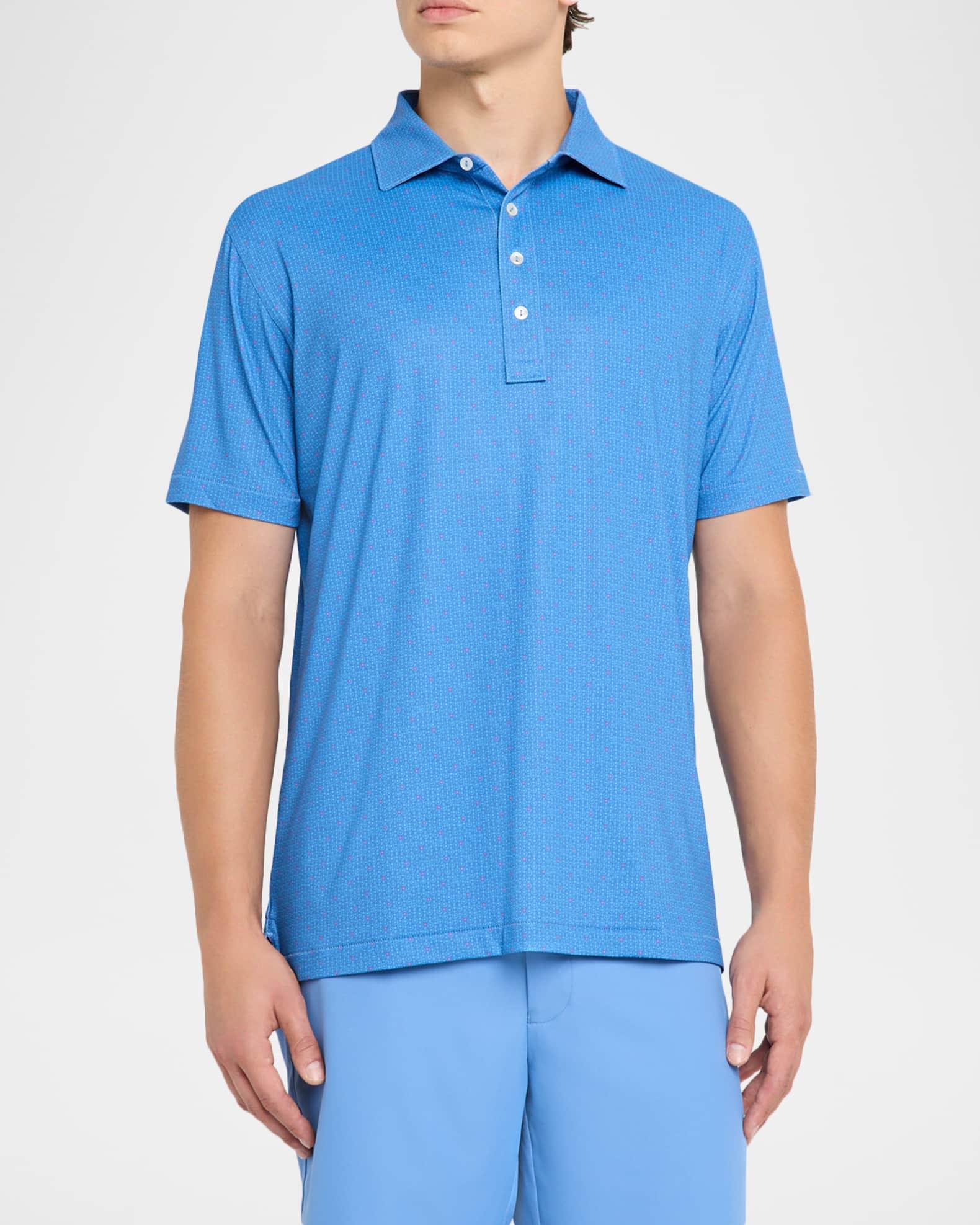 Clean style, exceptional comfort, and next-level stretch and softness. Our crown-crafted jersey polos bring a soft, plush feel with wicking, four-way stretch, easy-care, and UPF 50+ sun protection. This shirt features a stylish compass print. Finished with our signature Kelly hard collar and detailed with mother-of-pearl buttons. Peter Millar "Due North" polo in performance jersey Features genuine mother-of-pearl buttons Spread collar; button-front Short sleeves Slim fit Pullover style Polyester/spandex Unlined Machine wash cold, tumble dry Imported