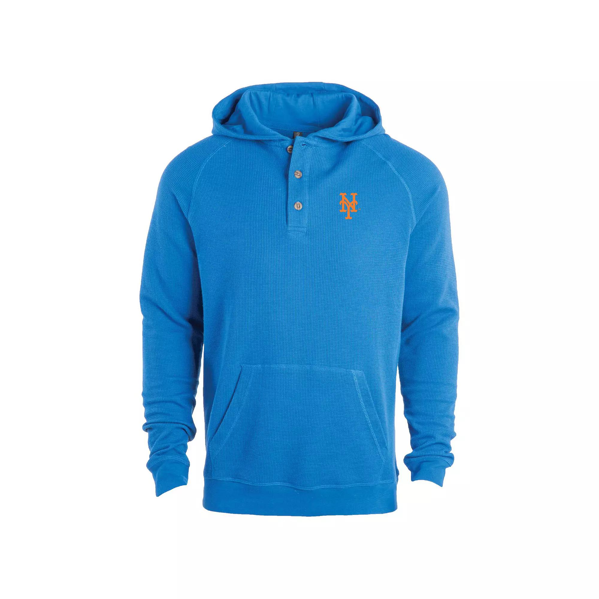 Stay warm while repping the New York Mets in this Dunbrooke Montana Lightweight Raglan Pullover Hoodie. This lightweight hoodie is perfect for mild temperatures, featuring a comfortable waffle-textured fabric that feels great against the skin. With an embroidered team logo at the left chest, this pullover proudly displays your New York Mets pride.Stay warm while repping the New York Mets in this Dunbrooke Montana Lightweight Raglan Pullover Hoodie. This lightweight hoodie is perfect for mild temperatures, featuring a comfortable waffle-textured fabric that feels great against the skin. With an embroidered team logo at the left chest, this pullover proudly displays your New York Mets pride.PRODUCT FEATURESFlatlock stitching creates flat seams that lie smoothly against the skinLong sleeveMachine wash with garment inside out, tumble dry lowBrand: DunbrookeHoodedThree-button placketMaterial: 60% Cotton/40% PolyesterFront pouch pocket for accessible storageOfficially licensedImportedRaglan sleeves for increased range of motion in the shoulders and chestWaffle textured fabricLightweight hoodie suited for mild temperaturesPulloverEmbroidered team logo at left chest Color: Blue. Gender: male. Age Group: adult.