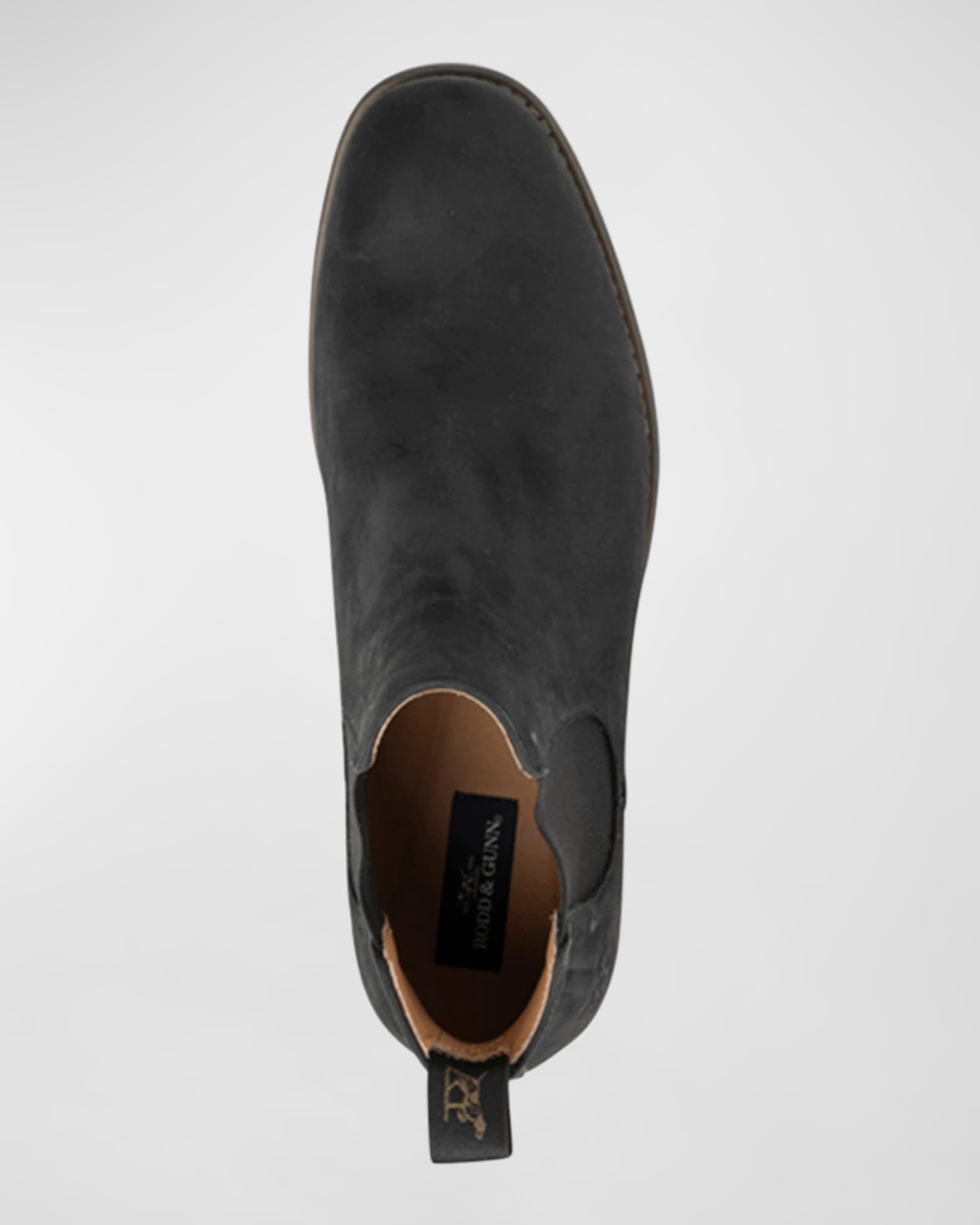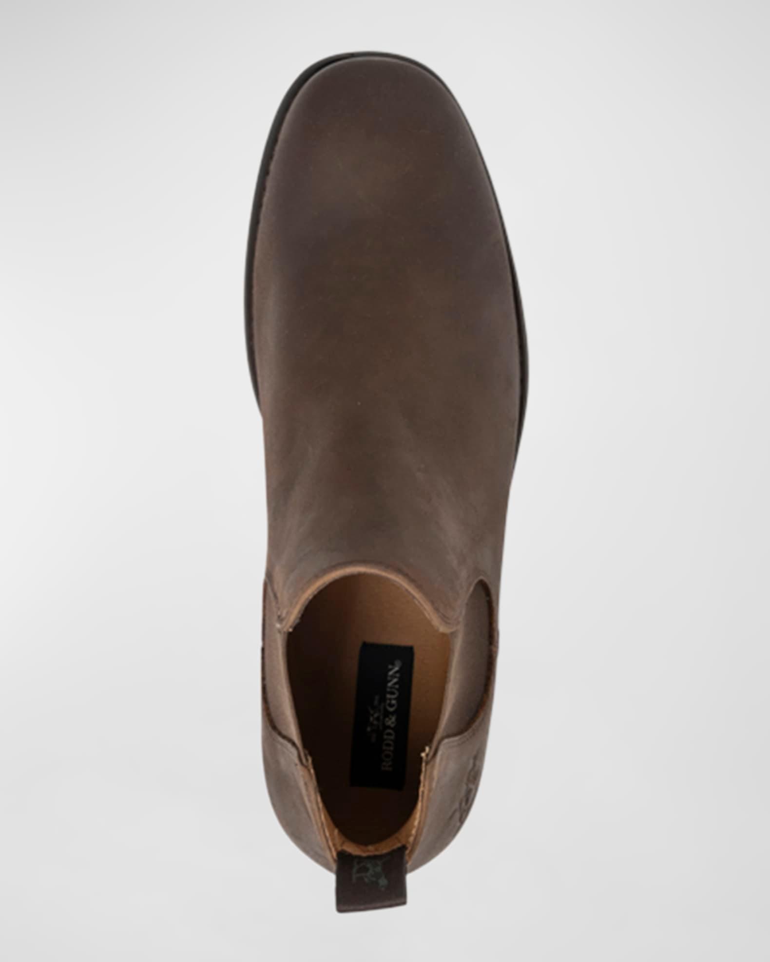 Rodd & Gunn "Ealing" chelsea boots in soft oiled leather Embossed pointer logo on the side 0.50 in / 15 mm flat heel Slightly squared round toe Leather/fabric lining Gored sides Grosgrain pull tab on the backstay Metal heel nail trims Ultra flexible rubber outsole Pull-on style Spot clean Imported