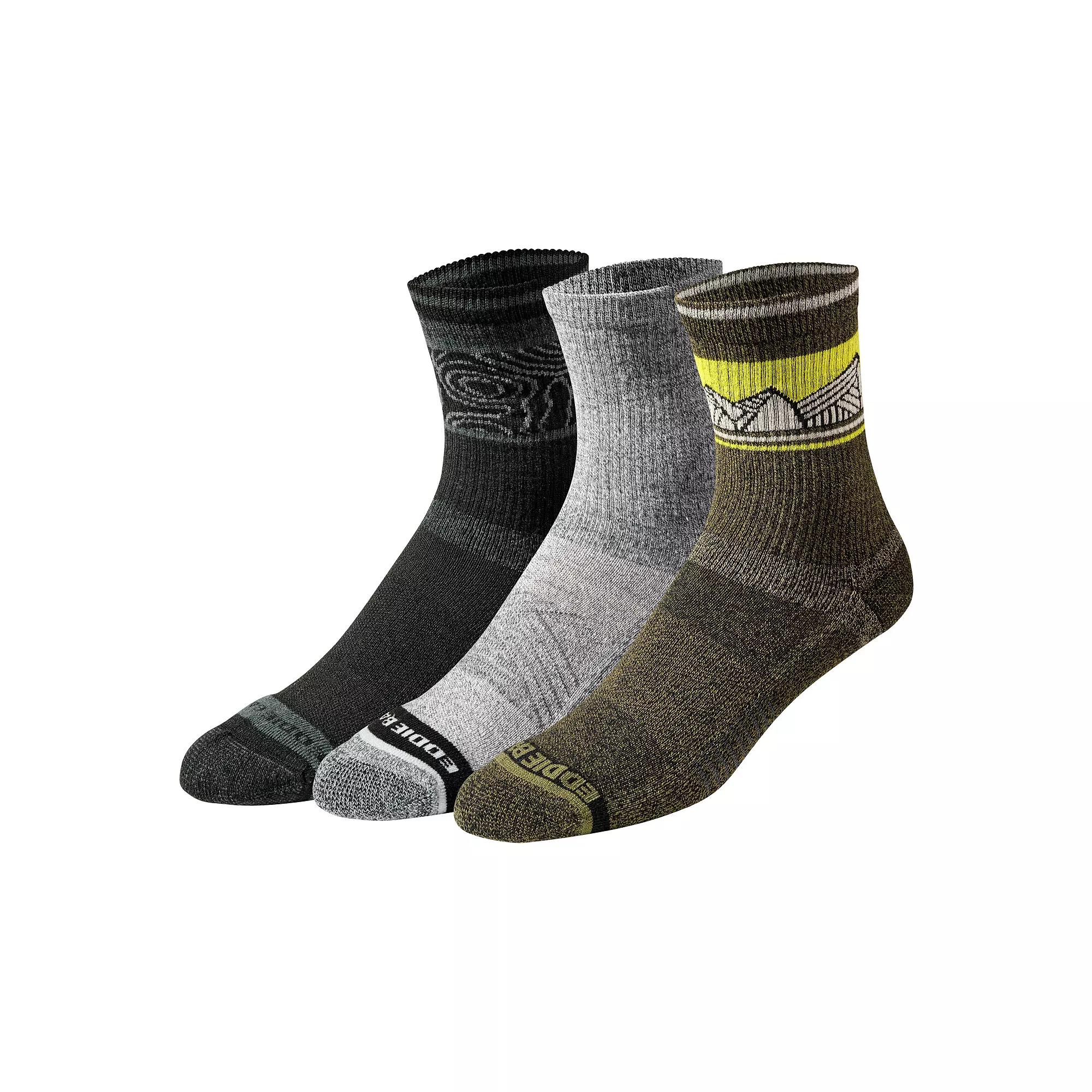 Step into your day the right way with these mens Eddie Bauer 3-pack performance crew socks. Step into your day the right way with these mens Eddie Bauer 3-pack performance crew socks. FEATURES Mid crew height for comfortable below calf fit Ventilating Moisture-wicking Heel Lock System for secure fit with no slippage EB signature mountain arch supportfor the perfect fit Seamless toe to prevent irritation Ribbed 3 pairs of socksFABRIC & CARE 64% polyester, 30% REPREVE polyester, 4% spandex, 2% nylon Machine wash ImportedSUSTAINABILITY FEATURES Contains recycled materials REPREVE polyester Size: 6-12. Color: Med Green. Gender: male. Age Group: adult.