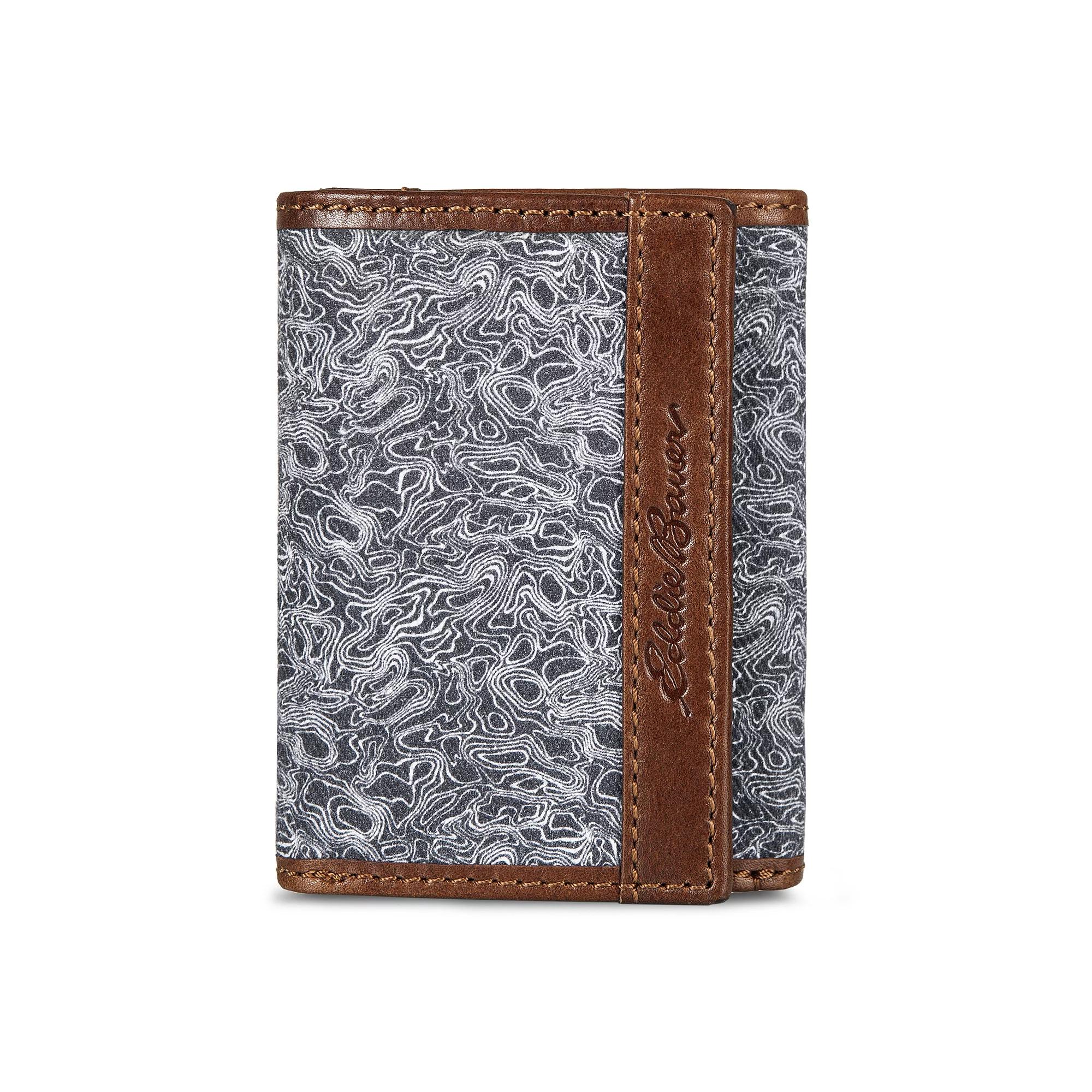 Carry your cards and cash in polished style with this mens leather and canvas wallet from Eddie Bauer. Carry your cards and cash in polished style with this mens leather and canvas wallet from Eddie Bauer. RFID-blocking technology helps protect your information Dimensions: 3.25 in. x 4.5 in. x 0.5 in.FABRIC & CARE Leather, cotton Spot clean Imported Size: One Size. Color: Dark Grey. Gender: male. Age Group: adult.