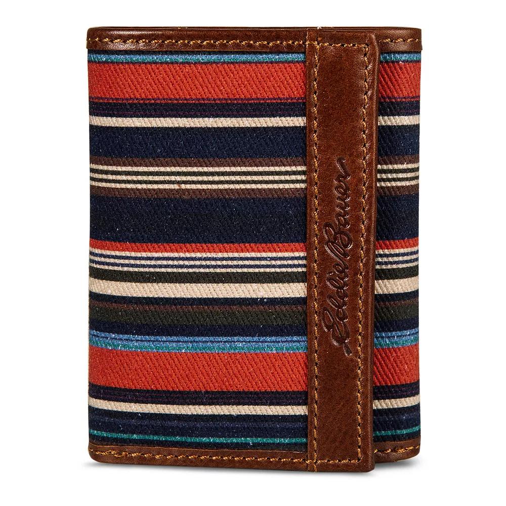 Carry your cards and cash in polished style with this mens leather and canvas wallet from Eddie Bauer. Carry your cards and cash in polished style with this mens leather and canvas wallet from Eddie Bauer. RFID-blocking technology helps protect your information Dimensions: 3.25 in. x 4.5 in. x 0.5 in.FABRIC & CARE Leather, cotton Spot clean Imported Size: One Size. Color: Clrs. Gender: male. Age Group: adult.