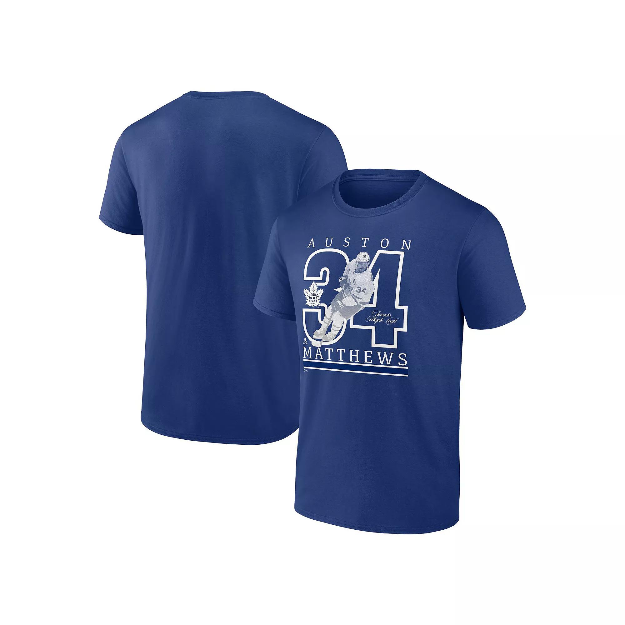 Put the spotlight on your favorite Toronto Maple Leafs player with this Auston Matthews Authentic Stack Name & Number T-Shirt by Fanatics. Its eye-catching design features the NHL star in action next to the teams logo. Made from 100% cotton, this Auston Matthews shirt offers a classic feel and timeless look.Put the spotlight on your favorite Toronto Maple Leafs player with this Auston Matthews Authentic Stack Name & Number T-Shirt by Fanatics. Its eye-catching design features the NHL star in action next to the teams logo. Made from 100% cotton, this Auston Matthews shirt offers a classic feel and timeless look.PRODUCT FEATURESPlayer name, number and action shot screen printed on the frontCrew neckMachine wash, tumble dry lowImportedMaterial: 100% CottonShort sleeveBrand: FanaticsOfficially licensed Color: Mpl Blue. Gender: male. Age Group: adult.