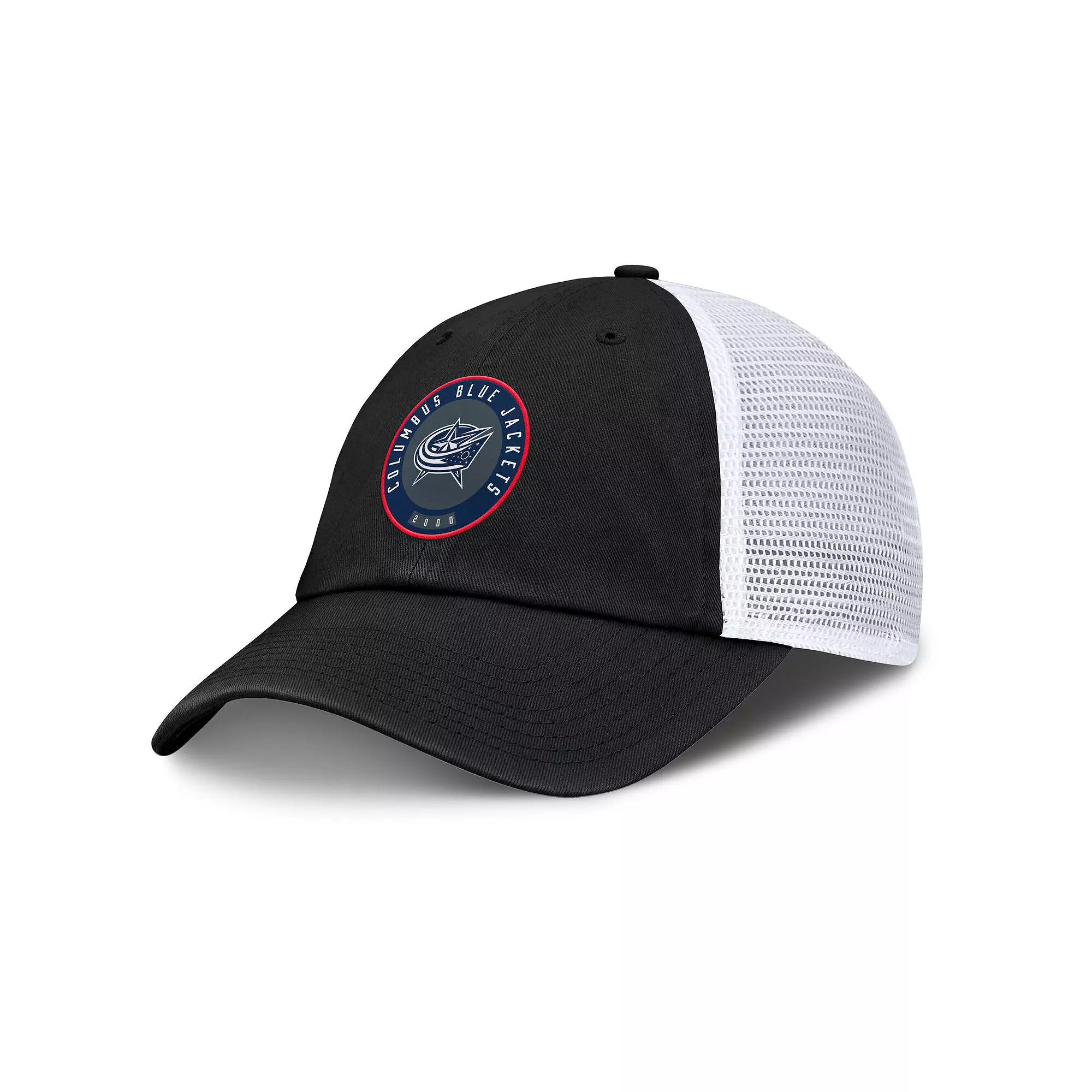 Add this Averie Trucker Adjustable Hat from Fanatics to your Columbus Blue Jackets collection. This relaxed-fit hat features a classic trucker design with four mesh mid and rear panels, offering excellent breathability for all-day comfort. The two solid front panels provide the perfect canvas for the striking embroidered fabric applique on the front, showcasing your Columbus Blue Jackets pride in style.Add this Averie Trucker Adjustable Hat from Fanatics to your Columbus Blue Jackets collection. This relaxed-fit hat features a classic trucker design with four mesh mid and rear panels, offering excellent breathability for all-day comfort. The two solid front panels provide the perfect canvas for the striking embroidered fabric applique on the front, showcasing your Columbus Blue Jackets pride in style.PRODUCT FEATURESCurved billOfficially licensedUnstructured relaxed fitTwo solid front panels with eyeletsSnap ClosureWipe clean with a damp clothFour mesh mid and rear panelsEmbroidered fabric applique on frontLow CrownBrand: FanaticsImportedOne size fits most Size: One Size. Color: Black. Gender: male. Age Group: adult.