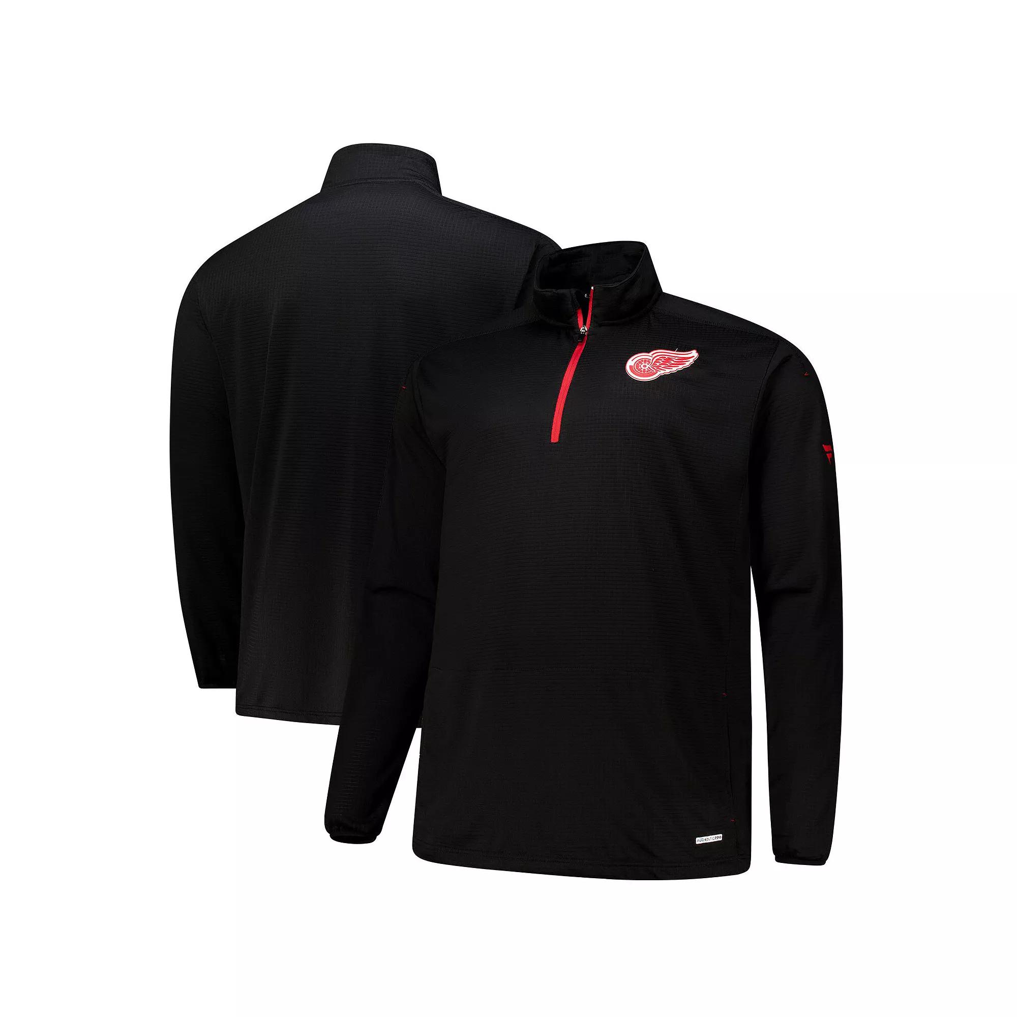 Cheer on the Detroit Red Wings with this Fanatics Authentic Pro Quarter-Zip Pullover. This breathable, waffle weave pullover features a heat-sealed rubber applique with embossed details at the left chest, showcasing your Detroit Red Wings pride. The front pouch pocket provides convenient storage for small essentials, while the mock neck and zipper garage add a touch of style and comfort.Cheer on the Detroit Red Wings with this Fanatics Authentic Pro Quarter-Zip Pullover. This breathable, waffle weave pullover features a heat-sealed rubber applique with embossed details at the left chest, showcasing your Detroit Red Wings pride. The front pouch pocket provides convenient storage for small essentials, while the mock neck and zipper garage add a touch of style and comfort.PRODUCT FEATURESHeat-sealed rubber applique with embossed details at left chestMaterial: 100% PolyesterLong sleeve1/4-ZipLightweight top suitable for mild temperaturesBreathable, waffle weave fabricImportedCuffs with elastic trimBrand: FanaticsMachine wash, tumble dry lowZipper garageFront pouch pocket provides organization for small itemsIdeal layering piece for all seasonsMock neckOfficially licensed Size: 2XB. Color: Black. Gender: male. Age Group: adult.