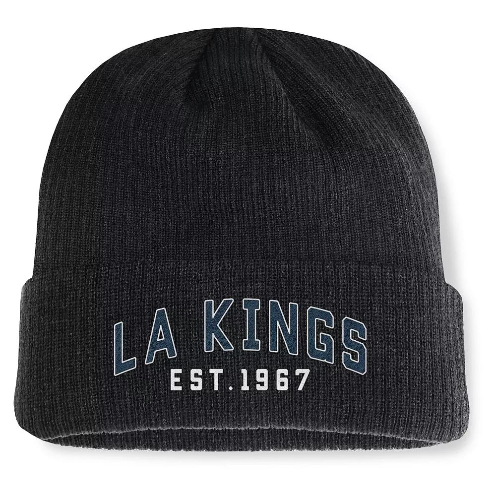 Stay warm while showcasing your love for your Los Angeles Kings with this Andee Cuffed Beanie from Fanatics. Made from soft and warm knit acrylic, this cuffed beanie features a woven pattern for an understated look. The embroidered Los Angeles Kings name on the front cuff adds a touch of team spirit, making it the perfect accessory for any fan.Stay warm while showcasing your love for your Los Angeles Kings with this Andee Cuffed Beanie from Fanatics. Made from soft and warm knit acrylic, this cuffed beanie features a woven pattern for an understated look. The embroidered Los Angeles Kings name on the front cuff adds a touch of team spirit, making it the perfect accessory for any fan.PRODUCT FEATURESHand wash, dry flatCuffed knit hatFold-over cuffBrand: FanaticsOfficially licensedOne size fits mostEmbroidered team name with raised details on front cuffMaterial: 100% Acrylic KnitImportedWoven pattern and knit design Size: One Size. Color: Kgs Black. Gender: male. Age Group: adult.